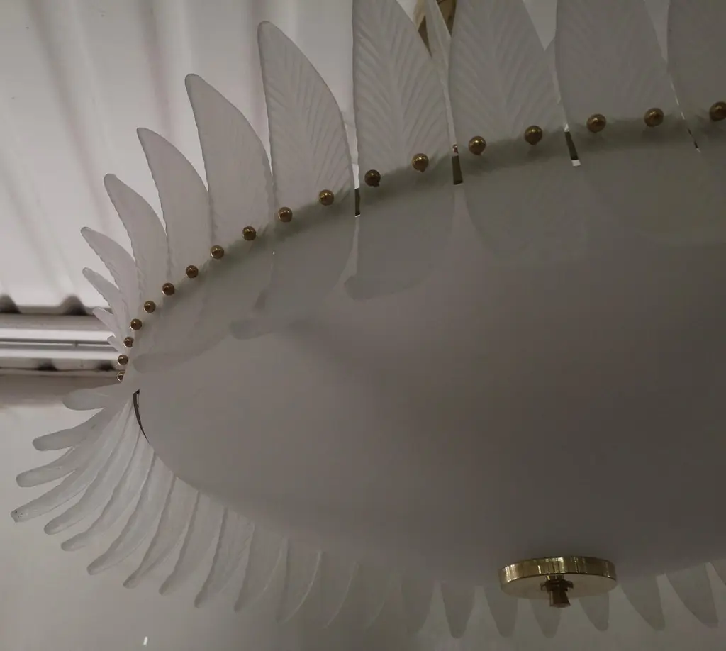 Murano Round Art Glass And Brass Midcentury Chandeliers And Pendant, 2000