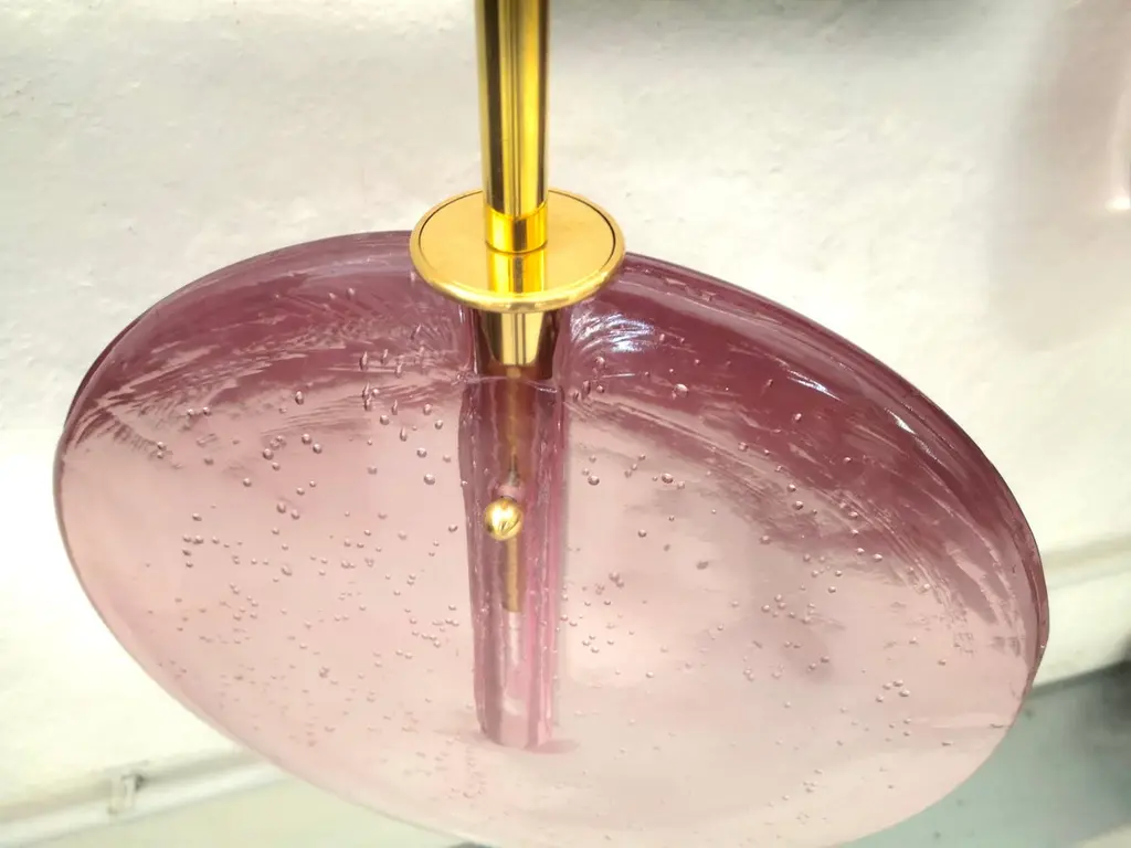 Murano Round Pink Glass And Brass Modern Lantern / Chandelier And Pendant, 2020