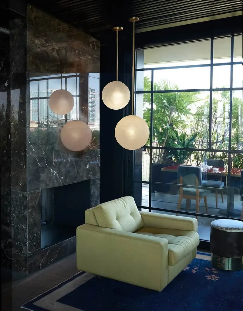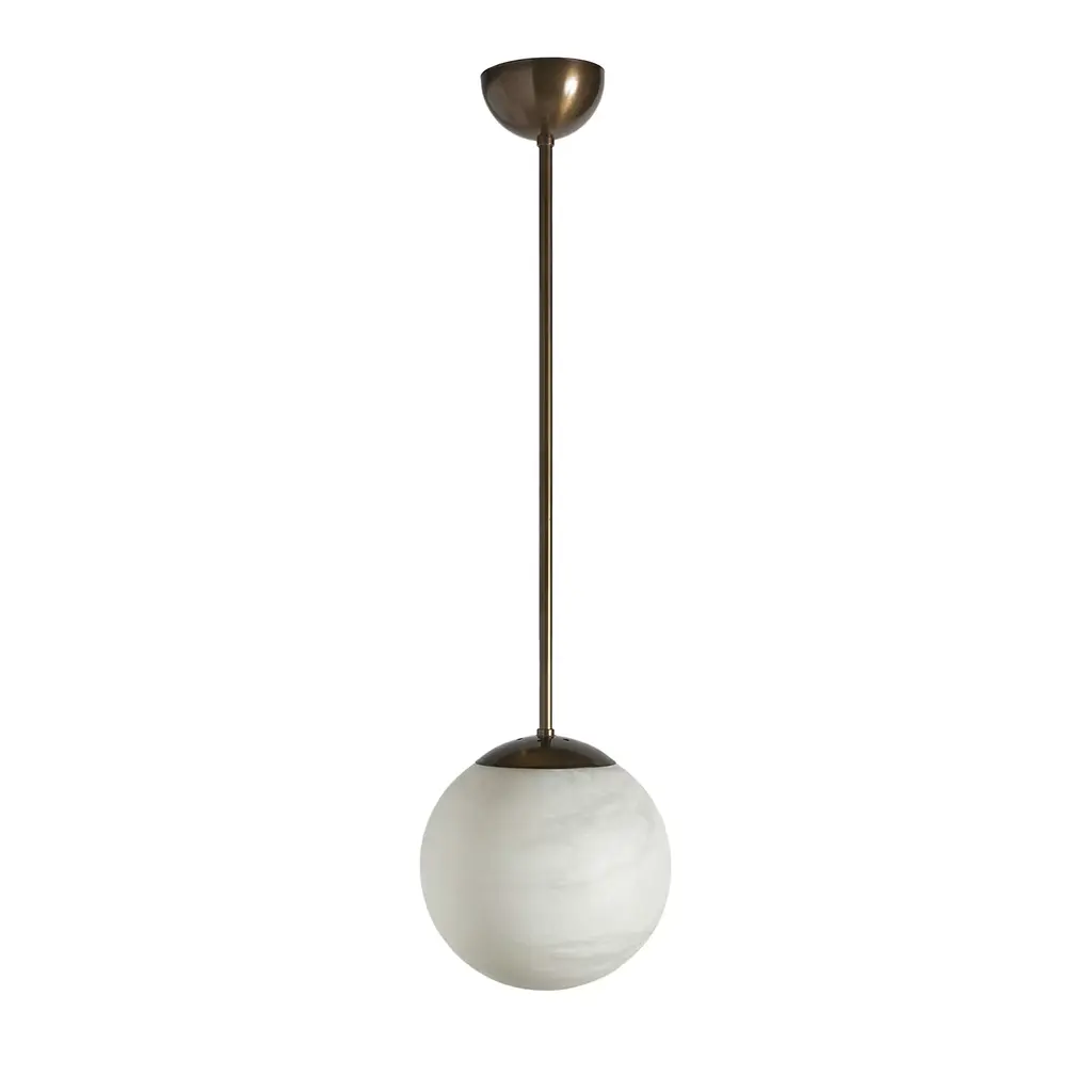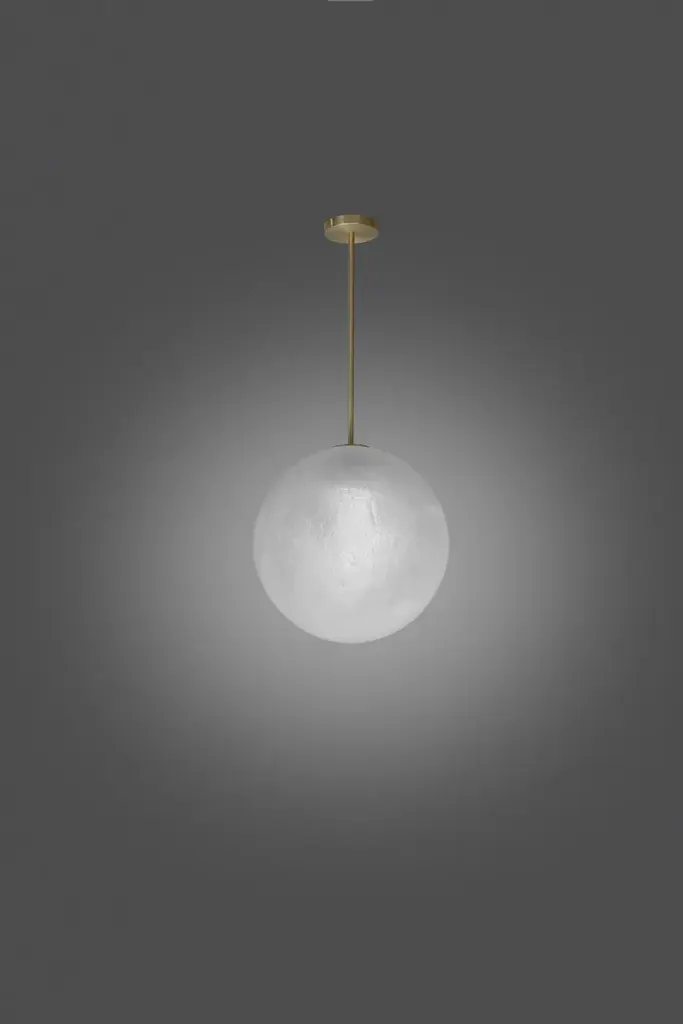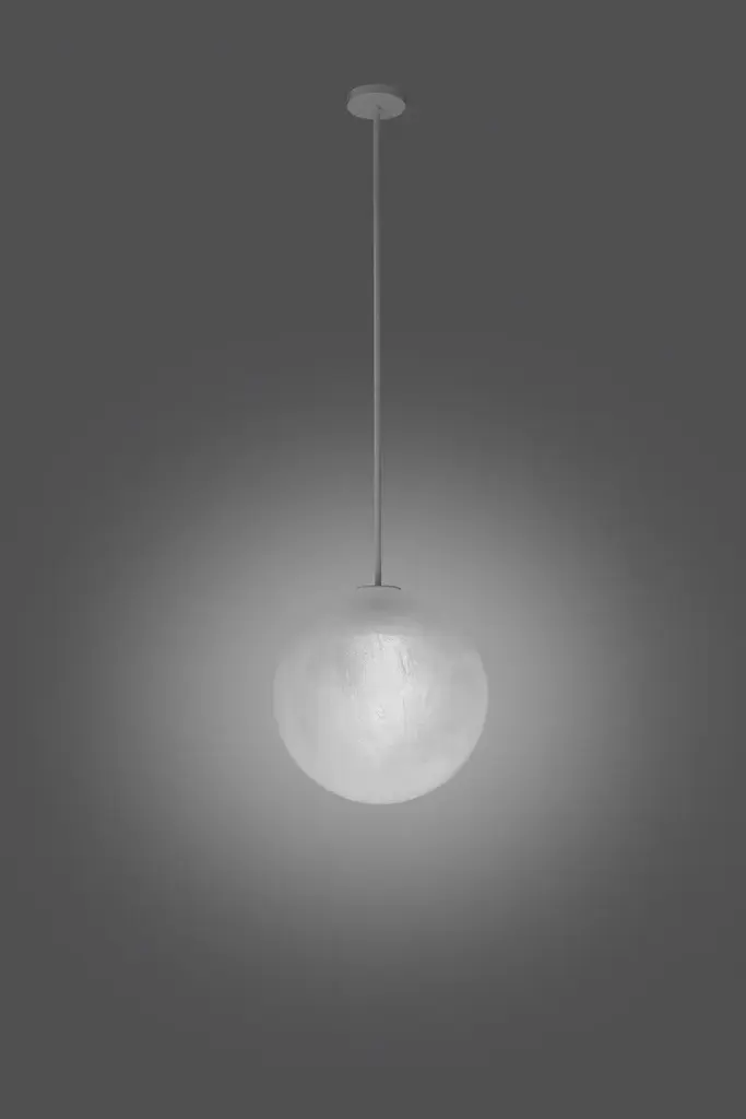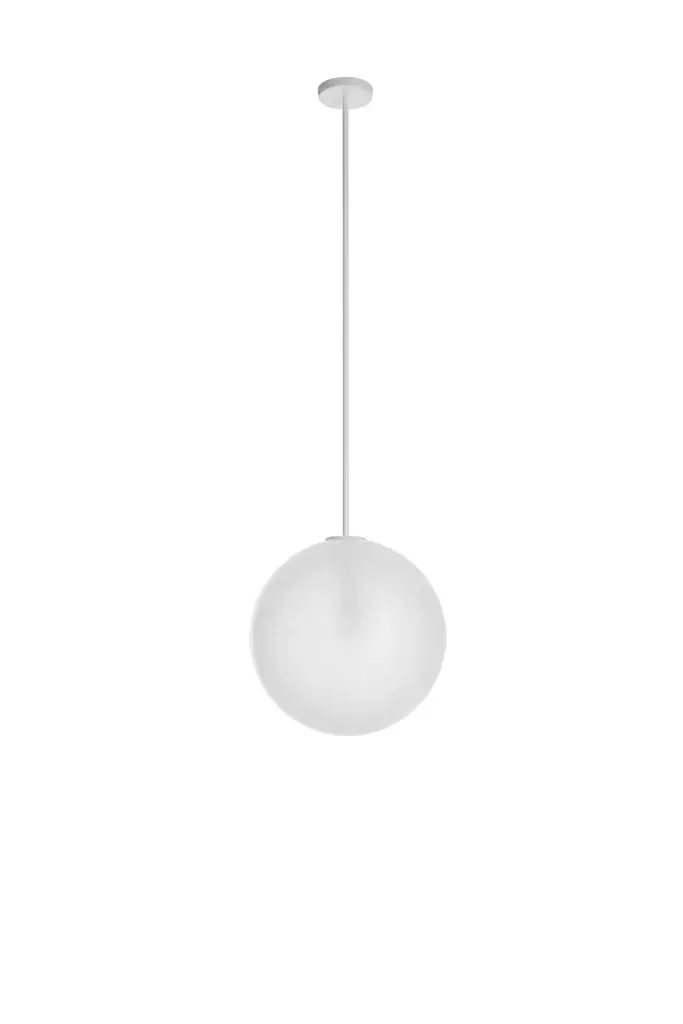 Murano Tige is a suspension lamp made of polyethylene. Our industrial production meets the master glassmakers’ art: the elegance of blown glass joins the sophsitication of the satin brass or white lacquered aluminium tige. Available in two different lenghts and two different globe diameters, Murano Tige enriches the Murano Collection proposition, also available in table and hanging version.Light source:- 1 x 10 W bulb