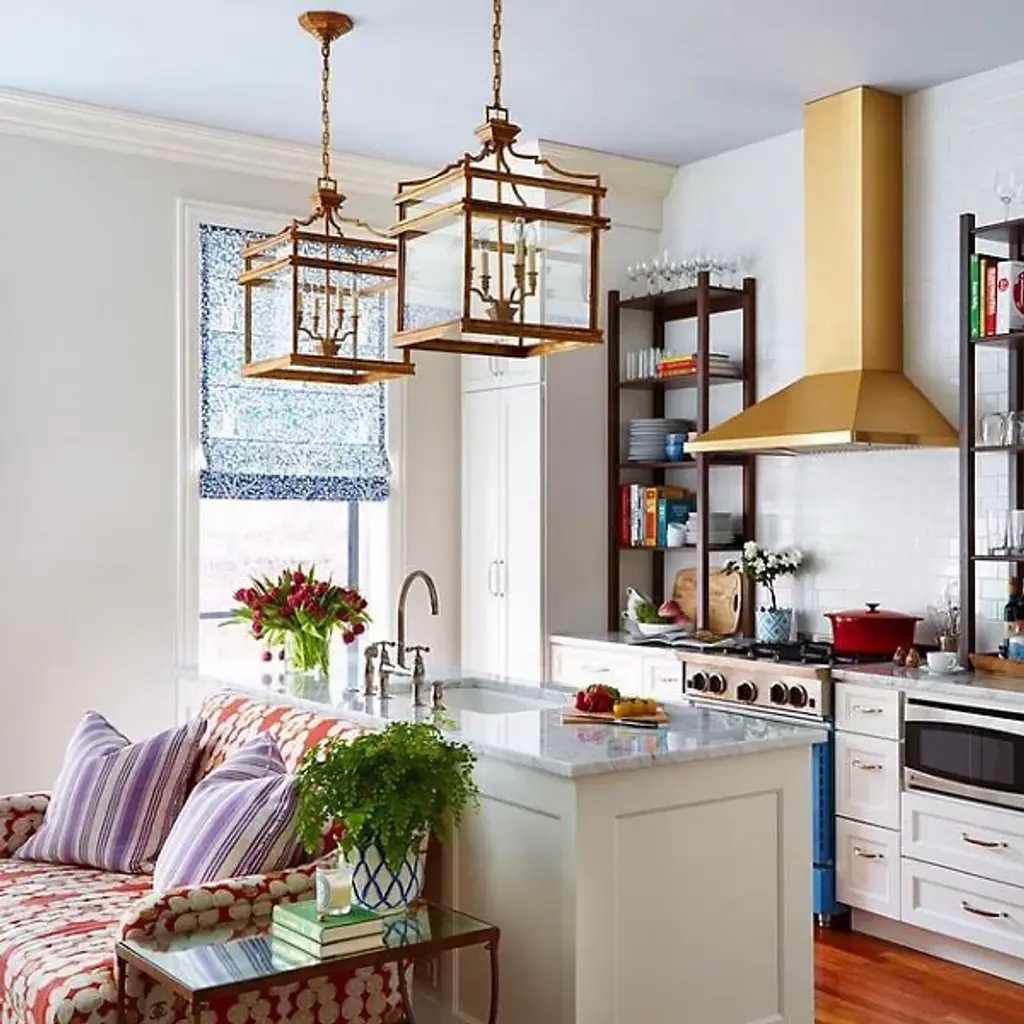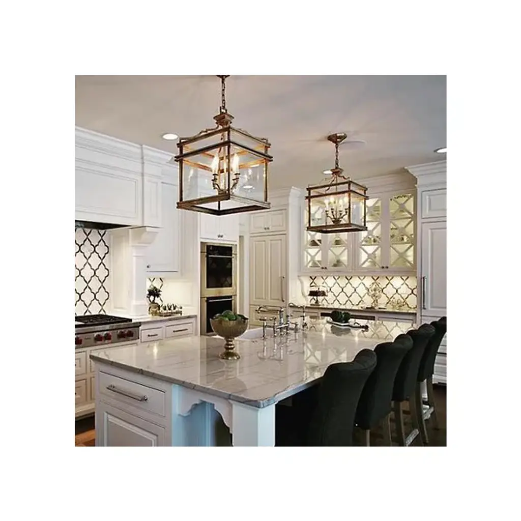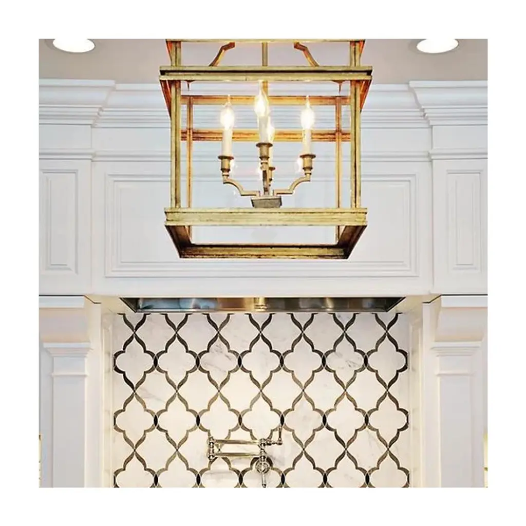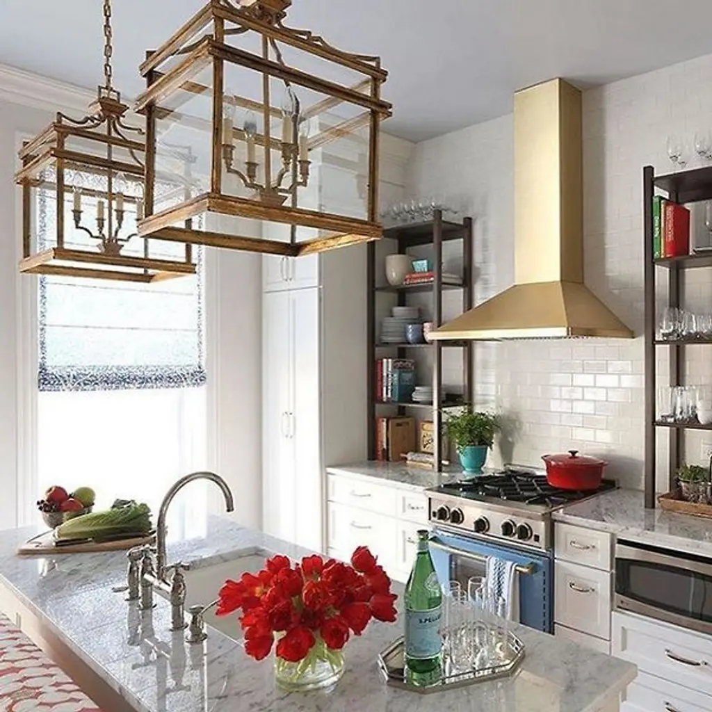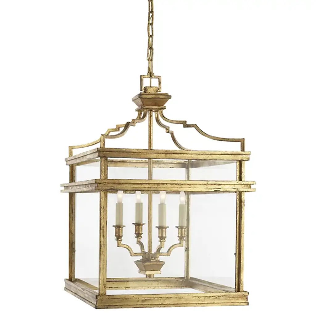Craft a space with European flair by adding the Mykonos Lantern Pendant by Visual Comfort Signature, formerly known as Visual Comfort, Featuring a square cage-like shape fashioned from metal, clear glass panes and 4 curvy candelabra sockets nestled inside, this piece creates a captivating setting wherever it is placed. It will instantly become a focal point whether hung solo above a reading chair or in clusters around a kitchen island, bar area or dining room table.