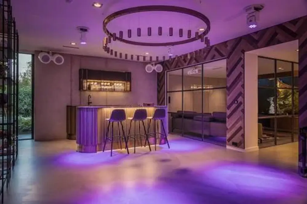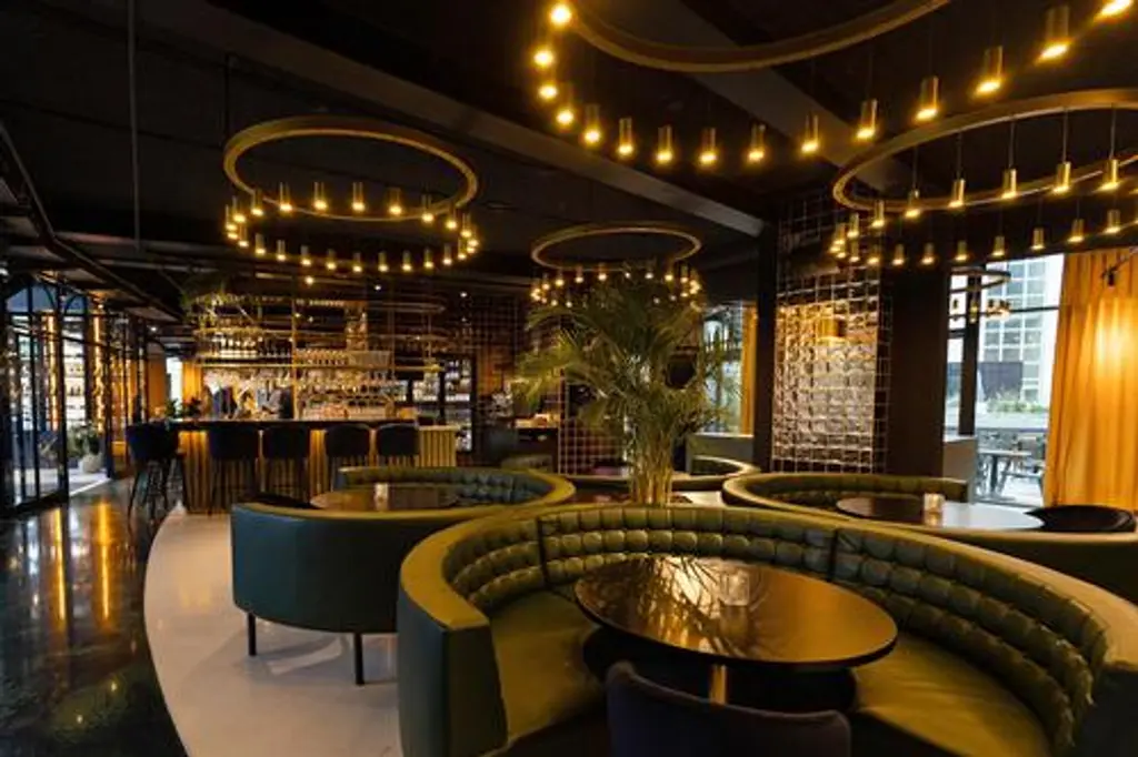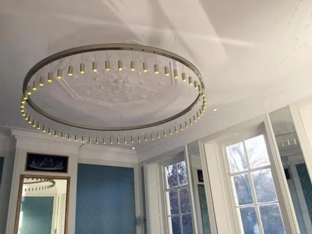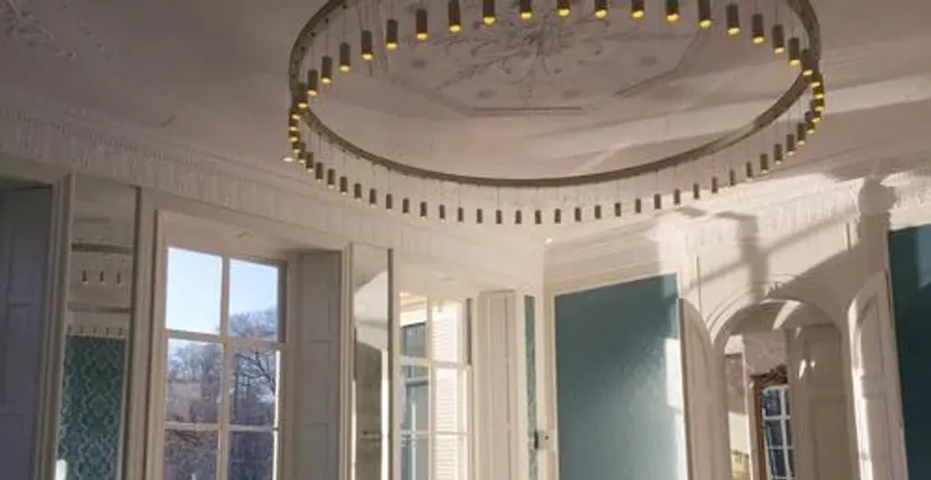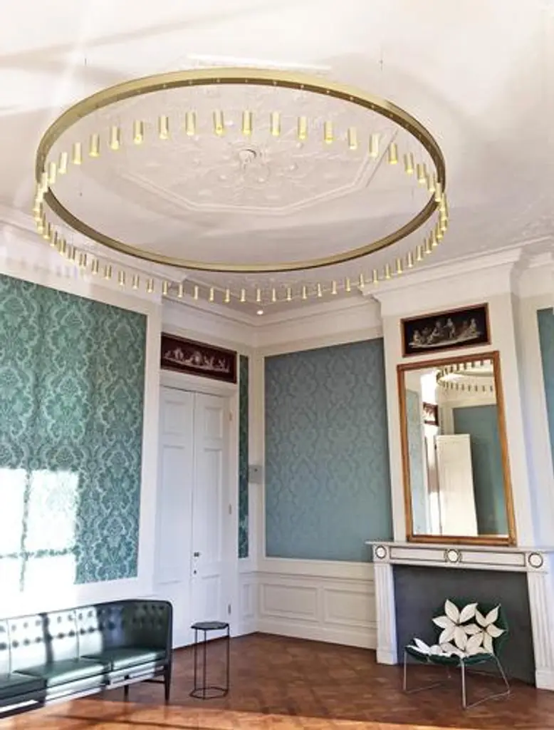 Myllennia 100 round bronze aluminum contemporary pendant lamp by jspr designed by jasper van grootel. Dimensions: ø 200 x h 100 cm. Materials: anodized aluminum. Handmade in the netherlands. up to 250v (europe/uk standard).