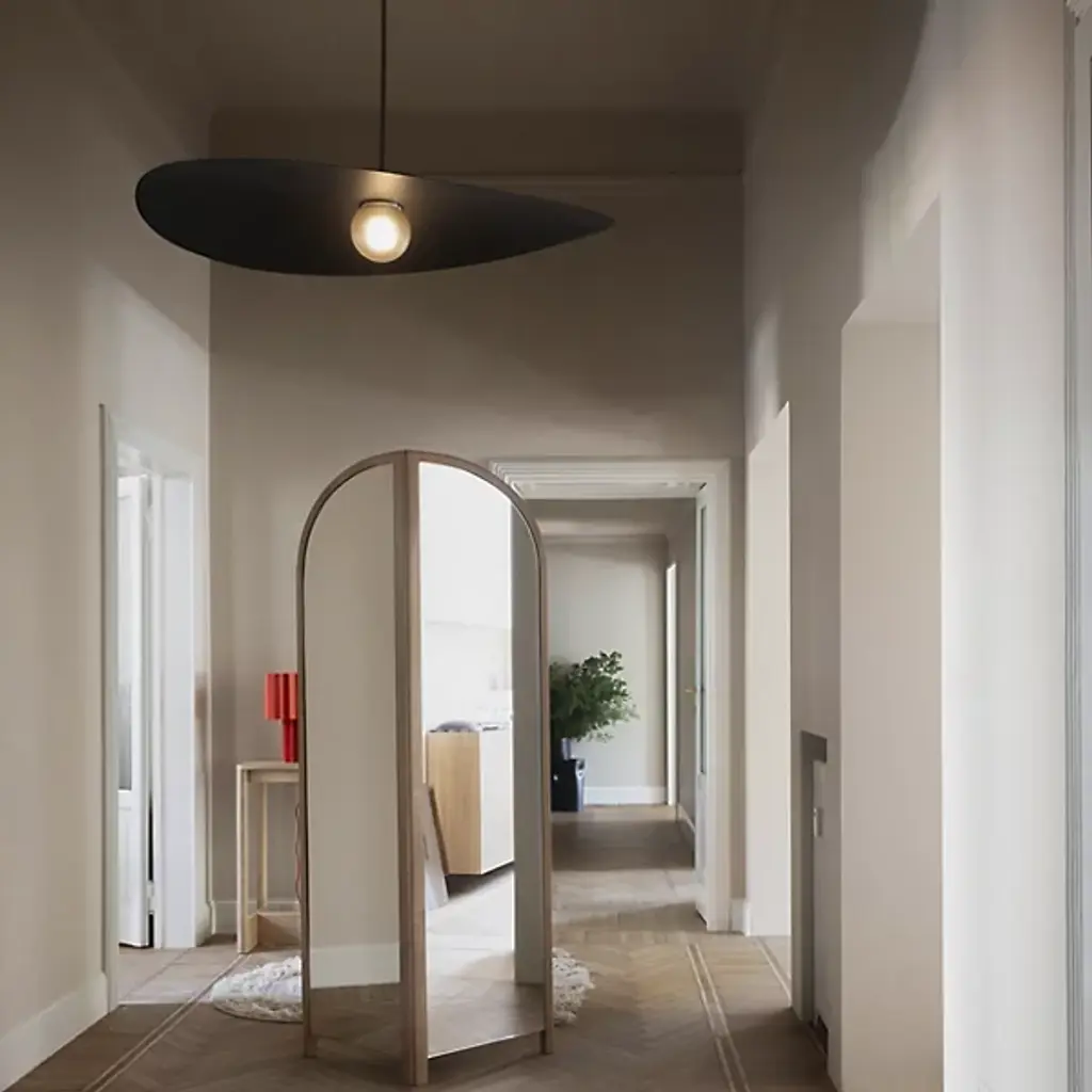 The Myrna Pendant from Ladies and Gentlemen Studio is contemporary and sophisticated. A lovely glass globe is crowned by a shade that boasts brim-style contours for a refined presentation. This pendant is secured by a sturdy ceiling canopy attached to a downrod featuring an elegant sphere at its end. Your pendant is illuminated by a brilliant LED which allows light to fill your room from overhead. Place this pendant above kitchen islands, dining tables, and more.