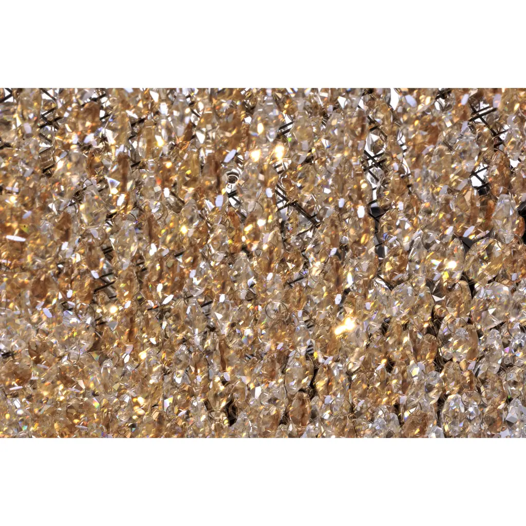 A sea of crystal strands suspend from within drums of steel which are finished in your choice of Bronze with Scotch crystal or Polished Chrome with Mirror Smoke crystal. Hidden inside the drum is a powerful dimmable LED source which has the crystals dancing in the night without any glare in your eyes.