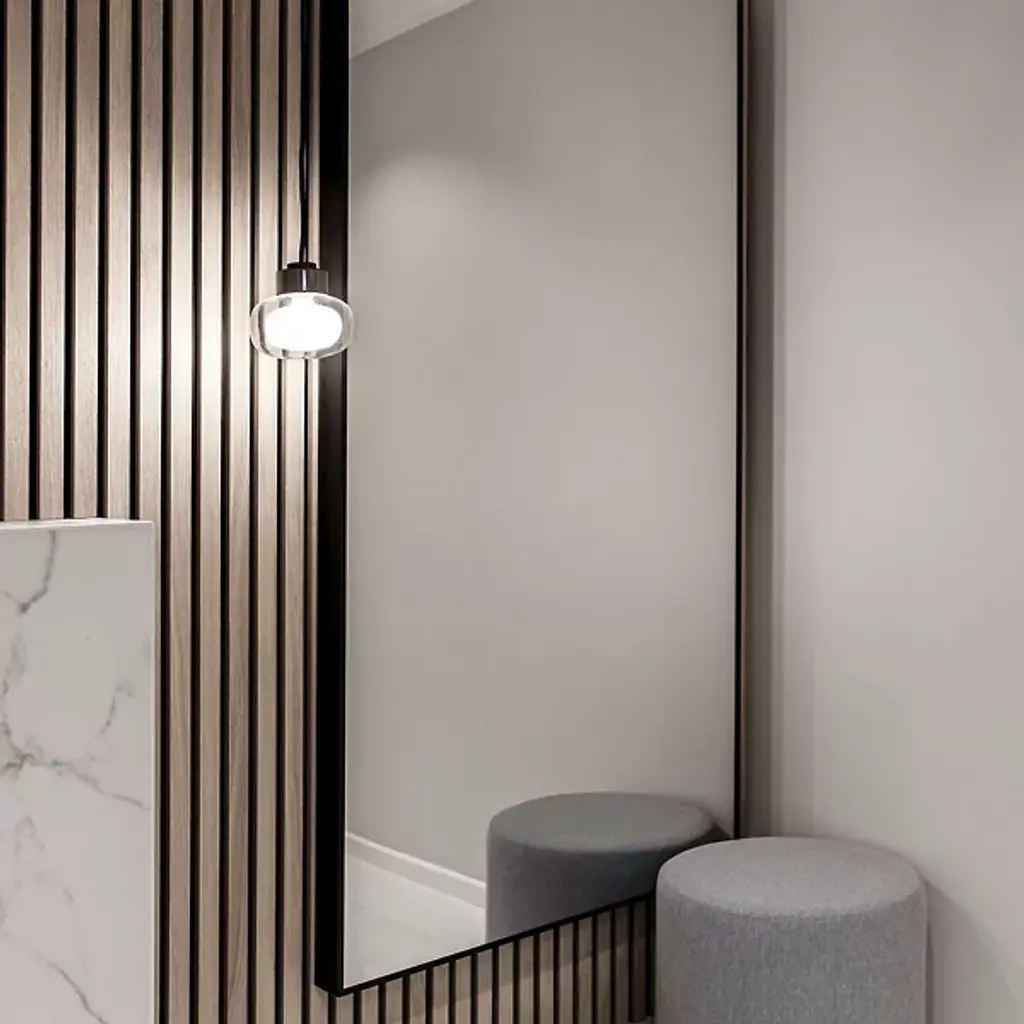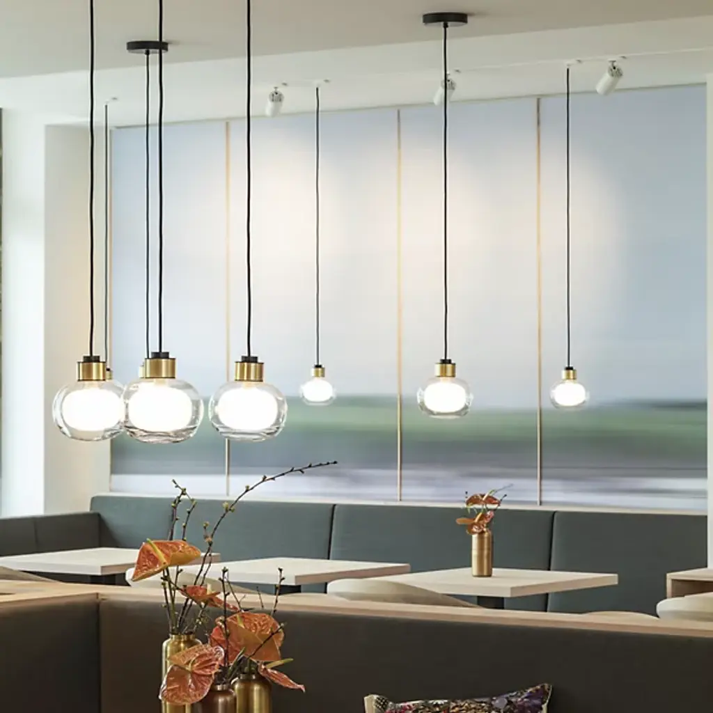 The Nabila Mini Pendant by Tooy gives your home a mid-century modern aesthetic. This furnishment is designed by artisan Corrado Dotti. Your pendant features a lovely shade of glass that vibrantly emanates LED light throughout your living space. The Nabila Pendant maintains suspension in midair through attachment to a ceiling canopy. The Nabila pendant features a simple design that allows it to fit easily into compact spaces. You can easily dim your lights by adding an ELV dimmer.