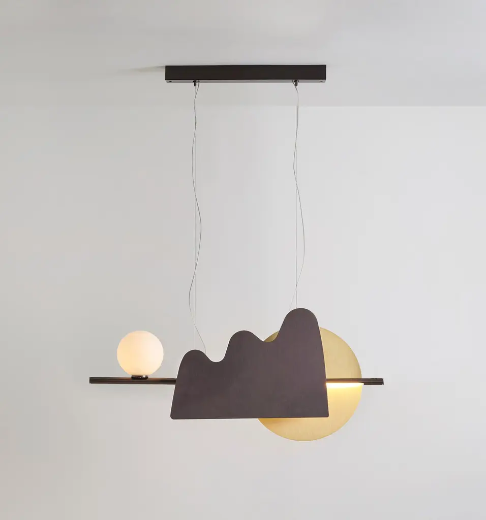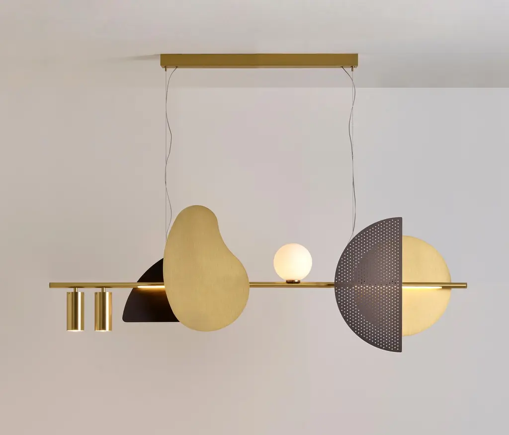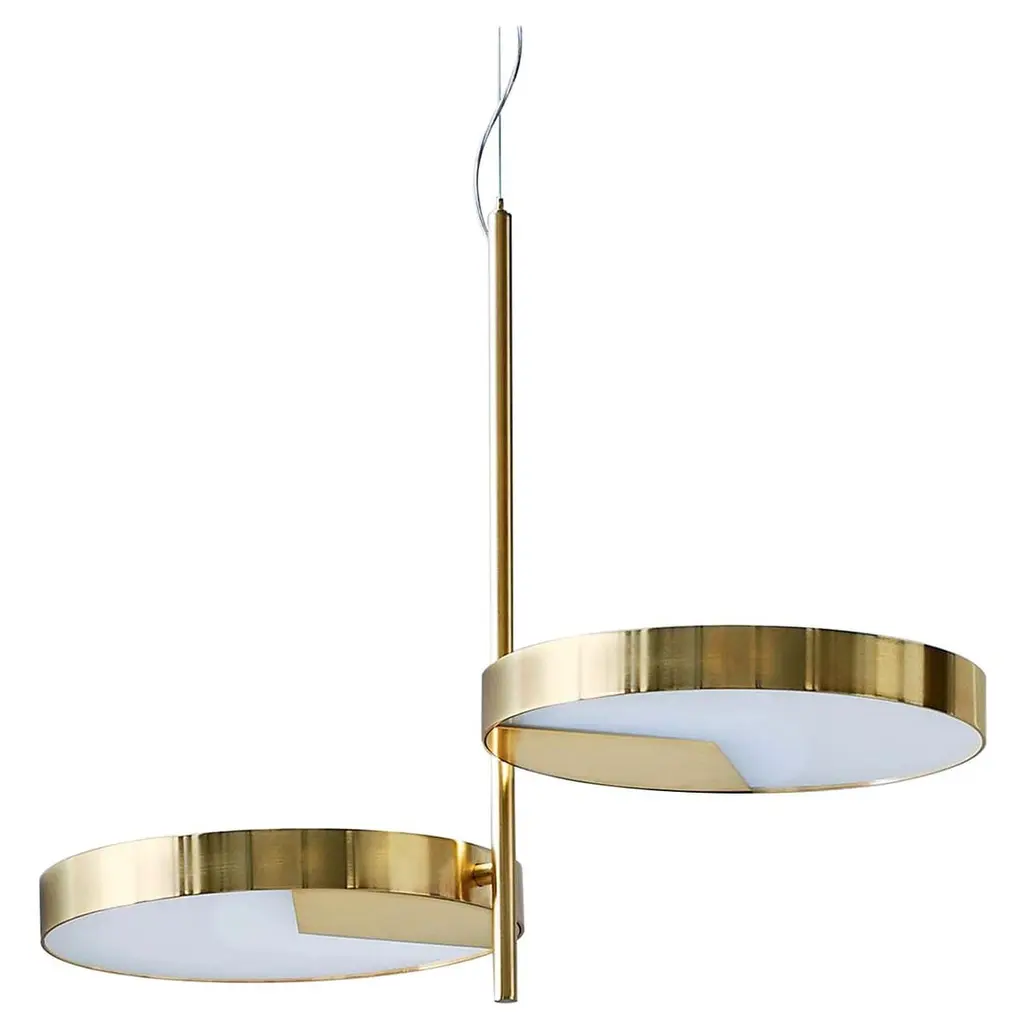 Nacho pendant by Sylvain WillenzDimensions: D 12 x W 130 X H 45 cmMaterials: Solid Brass, Polycarbonate, opal glassOthers finishes and dimensions are available. The height of the cables can be adjusted during installationAll our lamps can be wired according to each country. If sold to the USA it will be wired for the USA for instance.As light as it looks, the forms of Cercle & trait rub together and hold together in a cleverly measured balance. A graphic pendant, available in different finishes, is just held by one small wire.CVL Luminaires, a company located in the Loire Valley, has more than five decades of experience in the design and manufacture of luminaires.The company ensures 100% French manufacturing. On the one hand, it offers a range of modular and adaptable catalog products, and on the other, it has a know-how that allows it to carry out fully customized projects.Your asset: flexibility. The factory allows production from one unit to another. In addition, the CVL team supports you in product development: study, design, standardization and production.