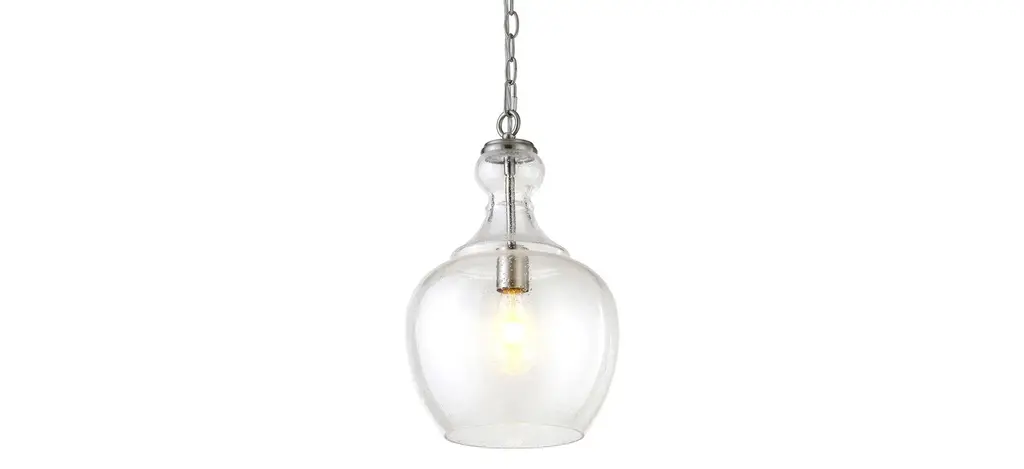With a style inspired by the industrial revolution but appropriate for a coastal beach cottage, this Nadire Pendant light is a chic update on a classic look. The domed glass shade is complemented with warm metallic accents that pair effortlessly with your existing color scheme. The hanging chain is fully adjustable to a length of up to 6 feet, allowing you to customize the fixture to your unique space.