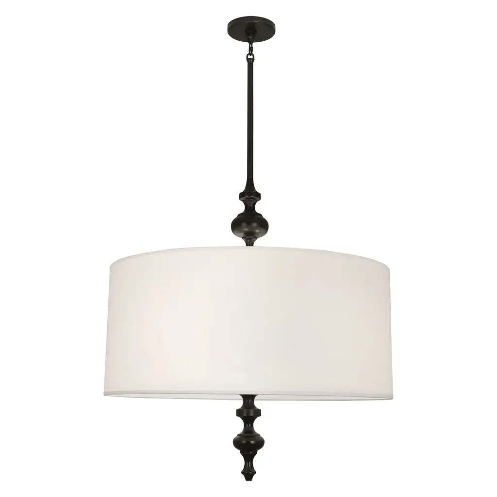 The Nance three light indoor pendant in bronze provides abundant light to your home, while adding style and interest. The mid-century inspired Nance lighting collection by is a versatile transitional design which fits in a wide array of traditional or contemporary settings. The tapered, off-white, faux silk shades add warmth and sophistication. The large pendant and semi-flush faux silk drum shades are complemented nicely with Satin Etched Opal glass diffusers to soften the downlight. In either of the available Brushed Nickel or Heirloom Bronze finishes, all the Nance fixtures are timeless additions to any foyer, kitchen or dining area. The assortment includes three- five- and nine-light chandeliers; a one-light wall sconce; two- and three-light bath vanities and a two-light semi-flush convertible drum pendant. Incandescent and ENERGY STAR-qualified LED lamping are available; all fixtures are California Title 24 compliant.