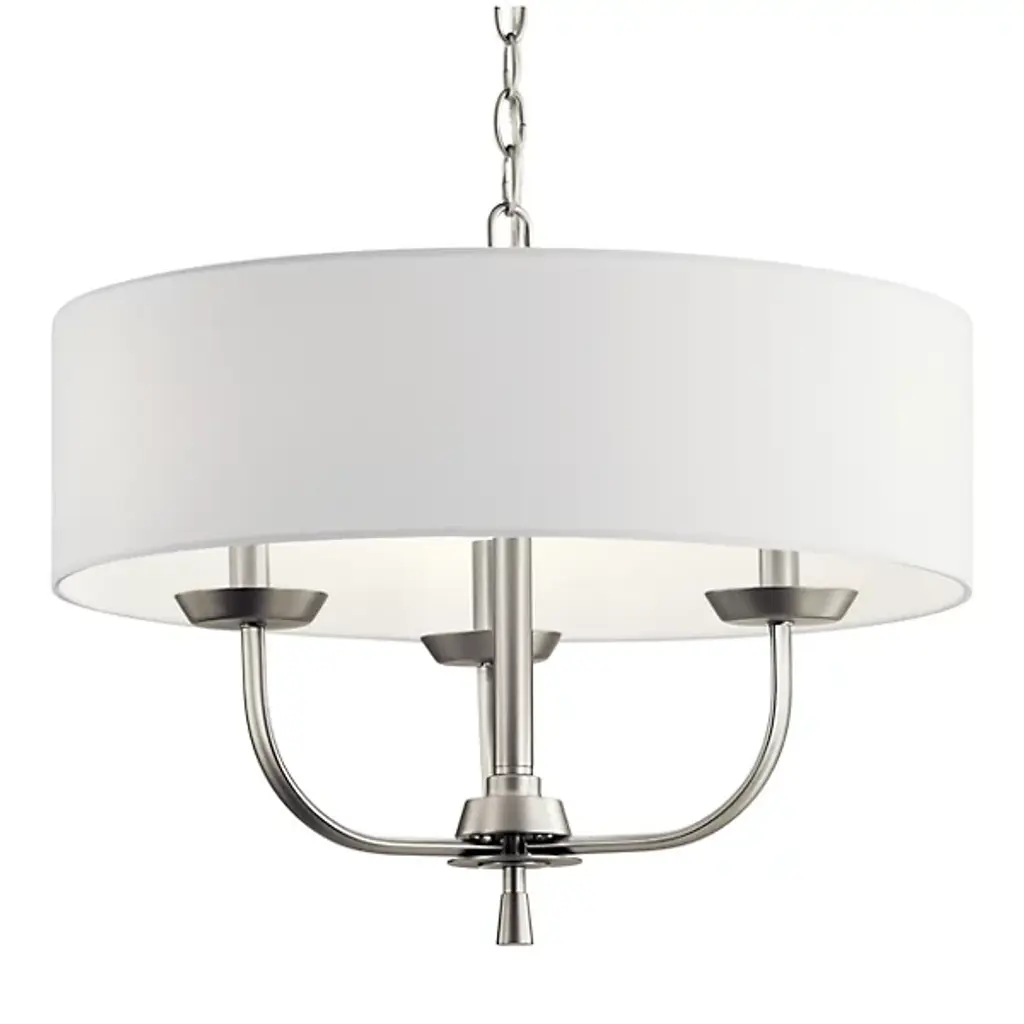 The Generation Lighting, formerly known as Sea Gull Lighting, Nance Convertible Semi-Flushmount features a Faux Silk drum shade that is well-complemented by a Satin Etched glass diffuser. This combination allows for a smooth distribution of light. May be installed as a semi-flushmount or a pendant.