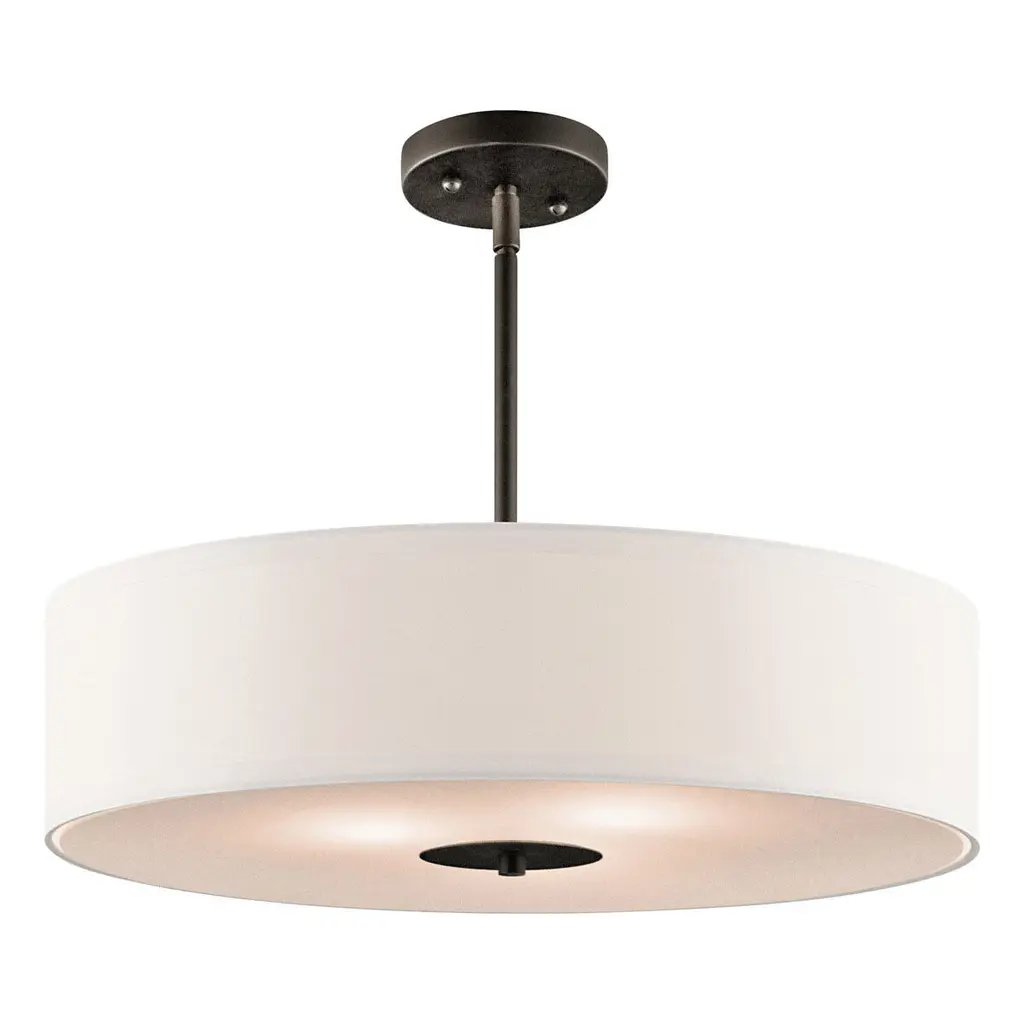 The Generation Lighting, formerly known as Sea Gull Lighting, Nance Convertible Semi-Flushmount features a Faux Silk drum shade that is well-complemented by a Satin Etched glass diffuser. This combination allows for a smooth distribution of light. May be installed as a semi-flushmount or a pendant.