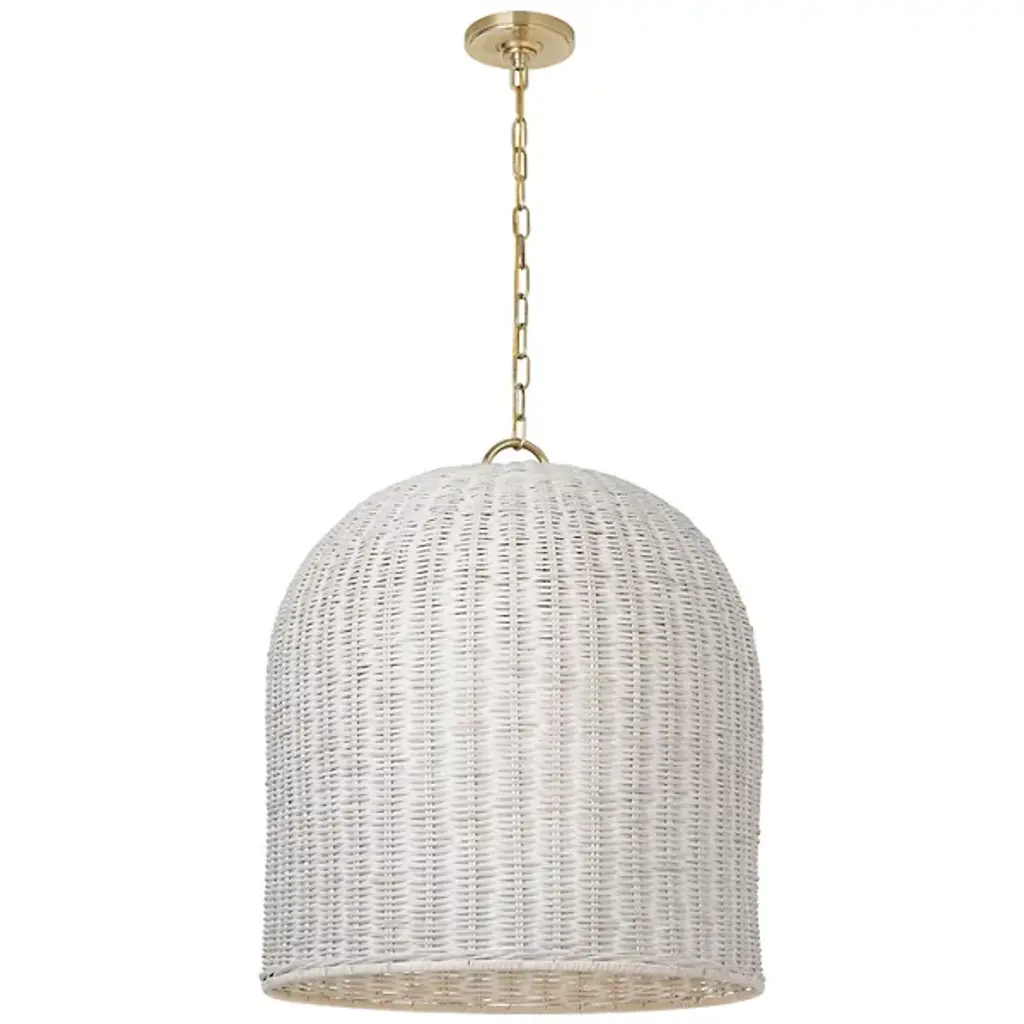 The Nancy Woven Pendant from Visual Comfort Signature will elevate your space with contemporary elegance. Designed by Marie Flanigan, this pendant features a sleek brass frame paired with a stylish wicker shade. The combination of modern design and natural elements creates a striking focal point in any room. Whether it's suspended over a dining table or in a living area, this pendant adds warmth and sophistication to your decor.