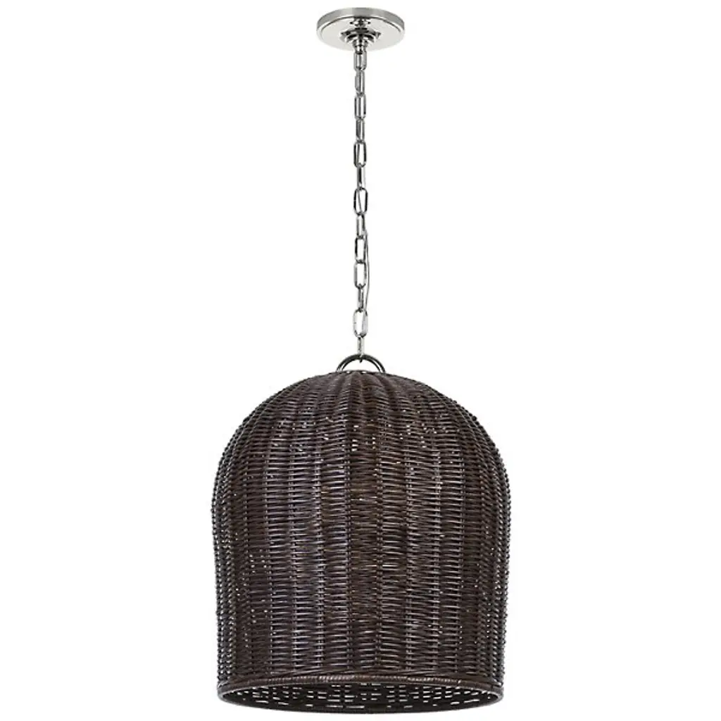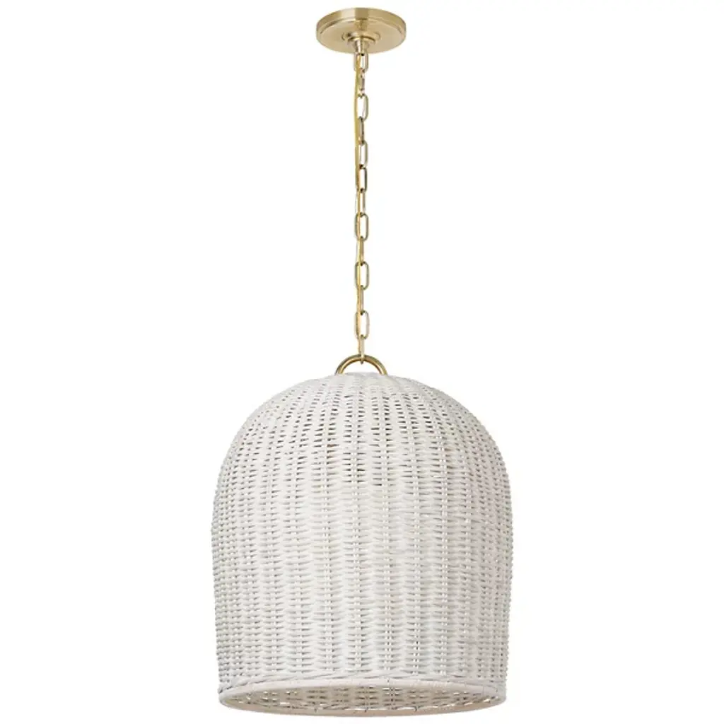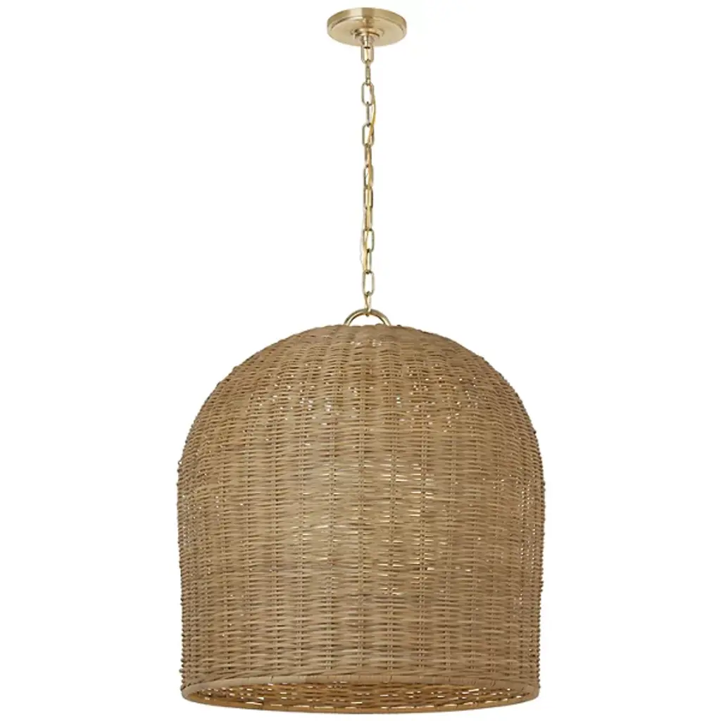The Nancy Woven Pendant from Visual Comfort Signature will elevate your space with contemporary elegance. Designed by Marie Flanigan, this pendant features a sleek brass frame paired with a stylish wicker shade. The combination of modern design and natural elements creates a striking focal point in any room. Whether it's suspended over a dining table or in a living area, this pendant adds warmth and sophistication to your decor.