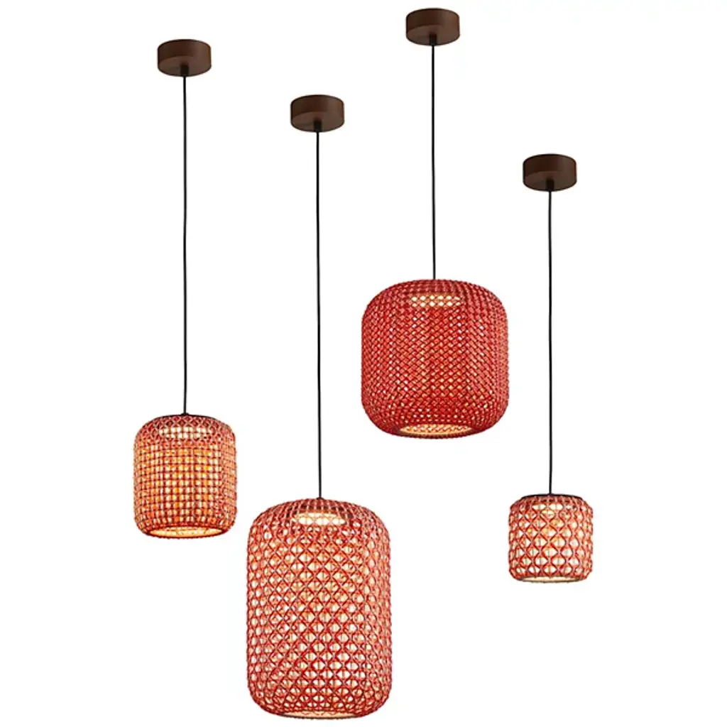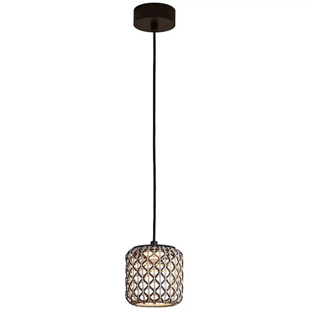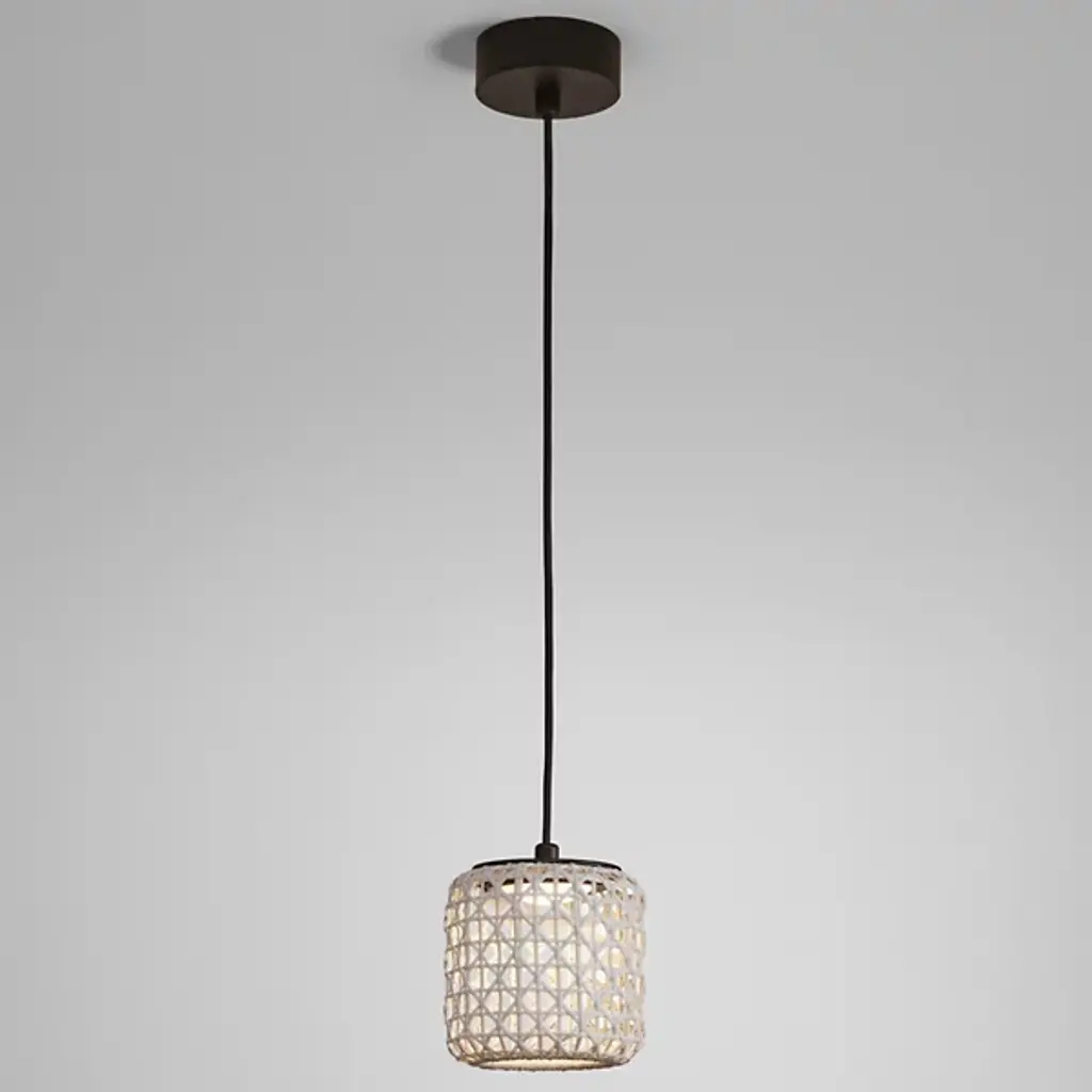 Feel inspired by Mediterranean style. Crafted to capture the essence of Cala Nans, this Nans Outdoor LED Mini Pendant by Bover is nothing short of sophisticated. A round base sits flush against the ceiling, while a slim circular rod leads down to the main feature—a handwoven synthetic wicker shade enrobing the light bulb. Multiple weaving styles and color combinations bring out the true Mediterranean flair in this mini pendant light. Install it outdoors above a table for maximum effect.
