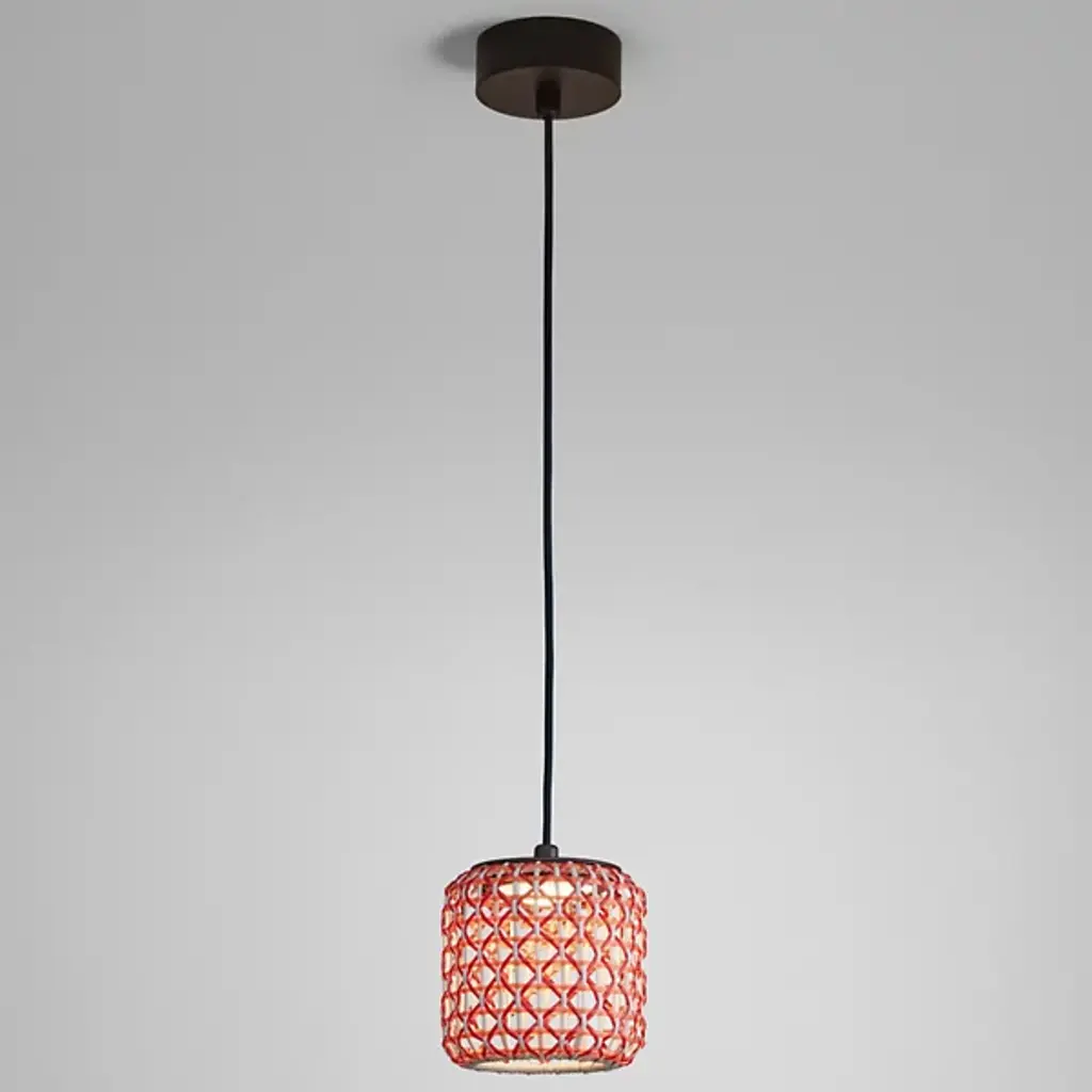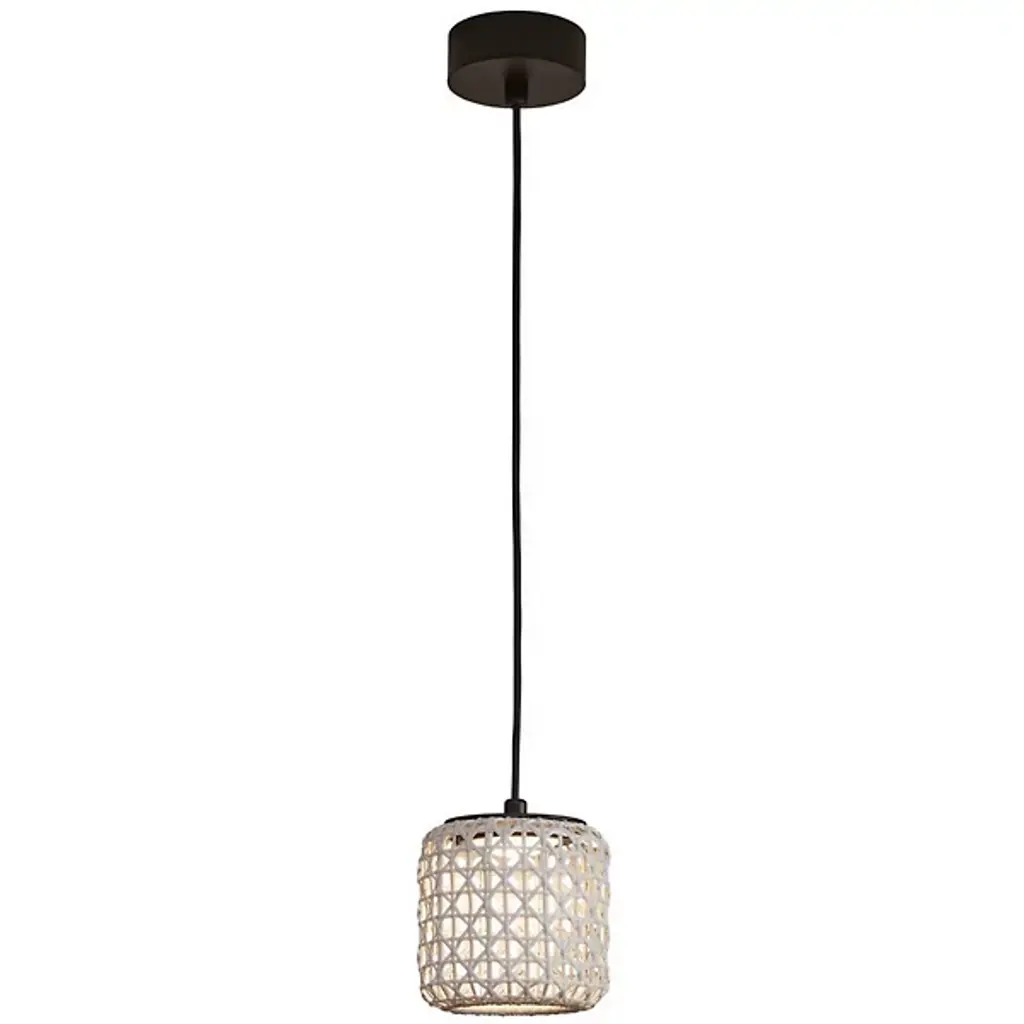 Feel inspired by Mediterranean style. Crafted to capture the essence of Cala Nans, this Nans Outdoor LED Mini Pendant by Bover is nothing short of sophisticated. A round base sits flush against the ceiling, while a slim circular rod leads down to the main feature—a handwoven synthetic wicker shade enrobing the light bulb. Multiple weaving styles and color combinations bring out the true Mediterranean flair in this mini pendant light. Install it outdoors above a table for maximum effect.