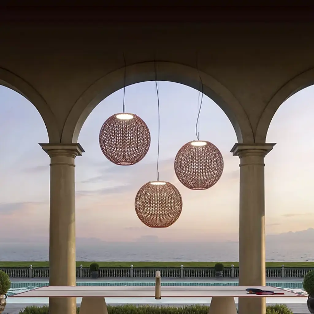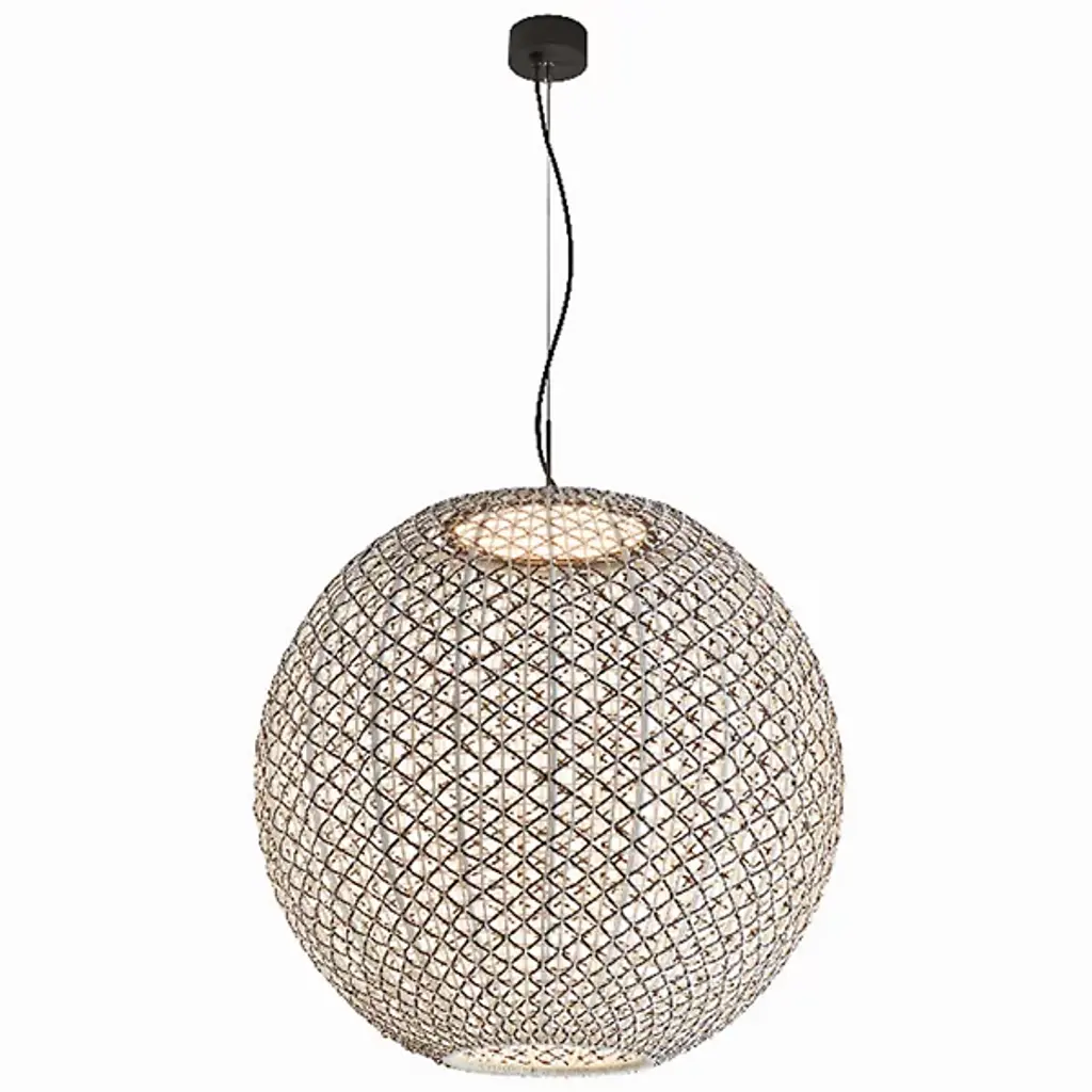 Modern bohemian merges with coastal Mediterranean. True to the relaxed lifestyle of beachside living, the Nans Outdoor LED Sphere Pendant by Bover features a light design that allows the rest of your decor to breathe. This pendant chandelier’s globe is shaped in a sphere, wrapped in handwoven wicker that takes on a ropey, nautical aesthetic. Ideal for small outdoor spaces, hang this pendant light above seating areas and patio tables to best present this beautiful and simple light fixture.