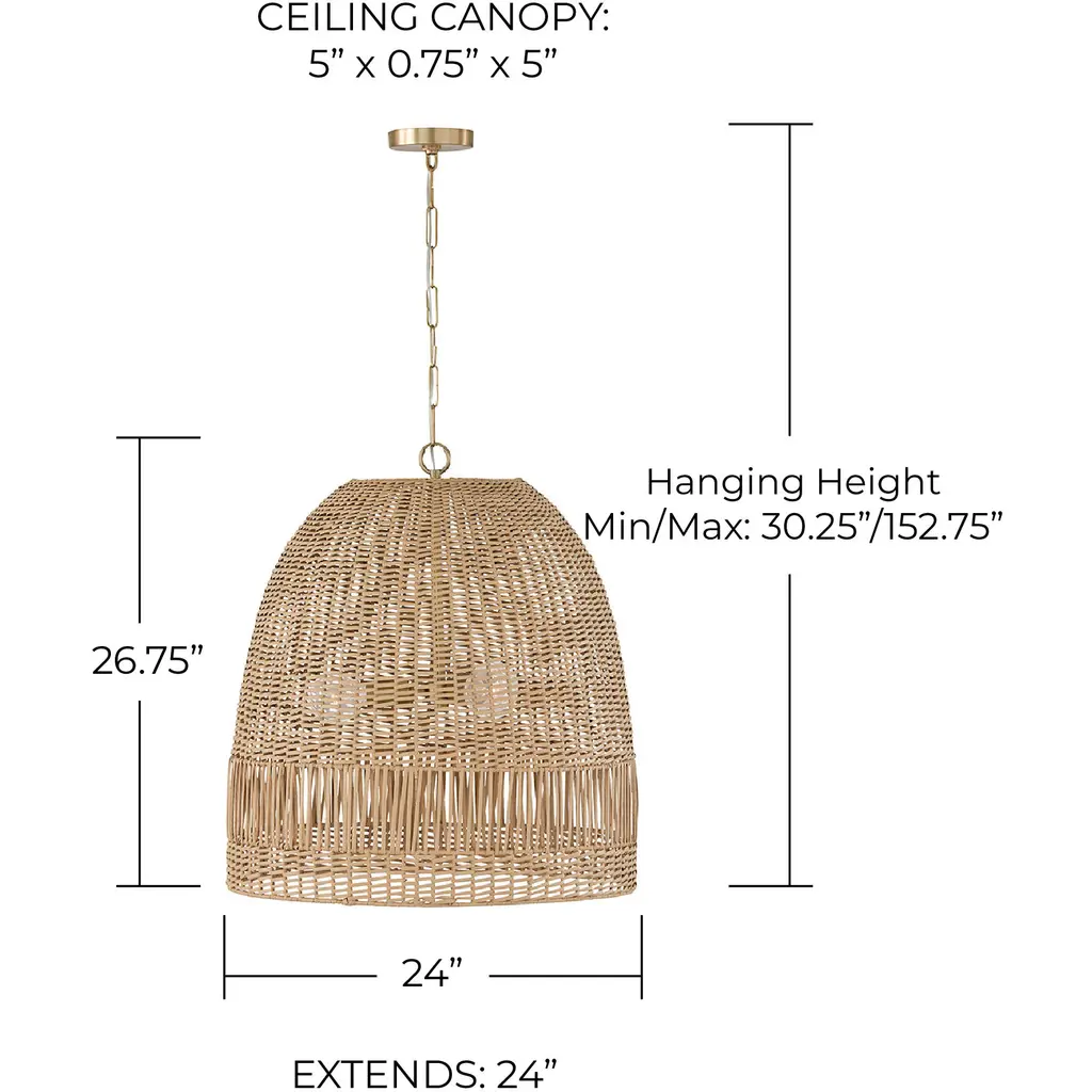 Natural by nature, the Naomi Large Pendant blends casual comfort with contemporary chic. The hand-woven rattan paired with a hand-painted natural tan finish and Matte Brass metal accents brings artisan texture to any space.