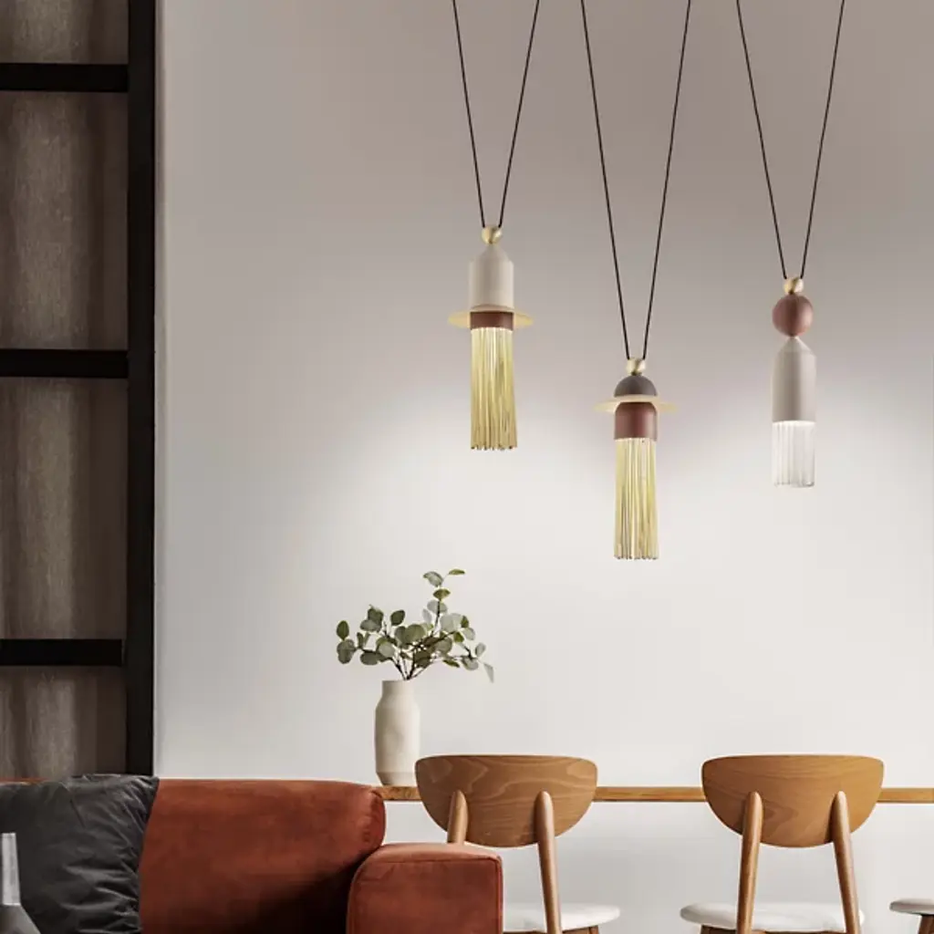 Embellish your interior spaces with a cornucopia of classic style using the Nappe LED Multi Light Pendant from Masiero. A cohesive assembly of designs by Marco Zito made in Italy, each piece takes inspiration from traditional Venetian textile tassels, updating an older structure with modern materials. Extending down from a solid brass sphere suspended from a power cord, tightly-gathered assemblies of threads are swapped for geometric turned metal housings holding energy-friendly LED lamping, while pyrex glass or slender metal rods descend around the lamping to imitate a stylized fabric fringe.