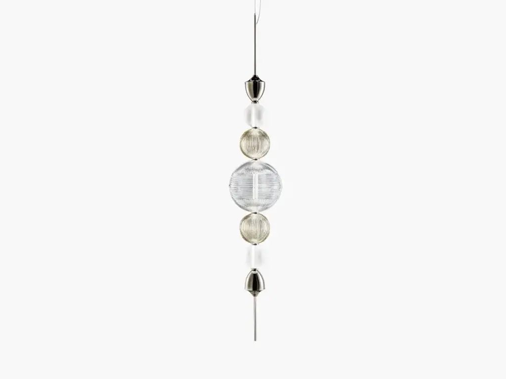 A classic ornament reimagined as a high-style contemporary luminaire. Bringing elegance to palace curtains and tradition to ceremonies, the tassel gets a new meaning in the elegant Nappe N0 LED Mini Pendant from Masiero. The simplicity of forms and their careful arrangement is a testament to designer Marco Zito’s attention to detail. Zito breaks down the charming bulbous form of the tassel into clean sphere accents. The eyes travel down with the fanned out shape of the metal shade. Its pyrex glass diffuser inspires as its linear marks serve as a playful interpretation of a tight bunch of threads. The glass draws you in as light slices across its surface in brilliant highlights. The light streams through it, giving your room a seductive down glow.
