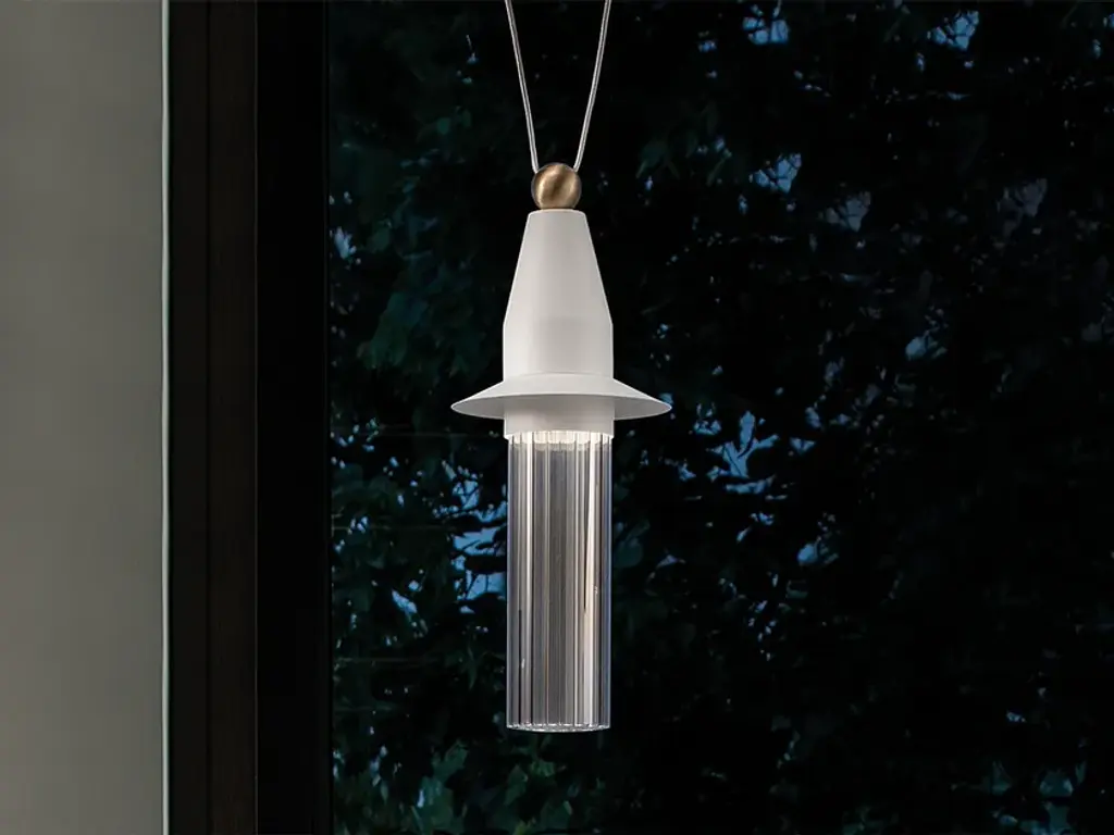 Nappe N5 is a suspension lamp with LED lighting in painted metal.Electrical characteristicsLEDX5,4W CRI 90 3000K 688LMLEDX5,4W CRI 90 2700K 653LMNOT DIMMABLECE LEDETL LEDCCC LEDCB SCHEME LEDNappe is a collection of lamps having a painted metal structure with painted metal temples or diffusers in cylindrical smoked Pyrex glass.