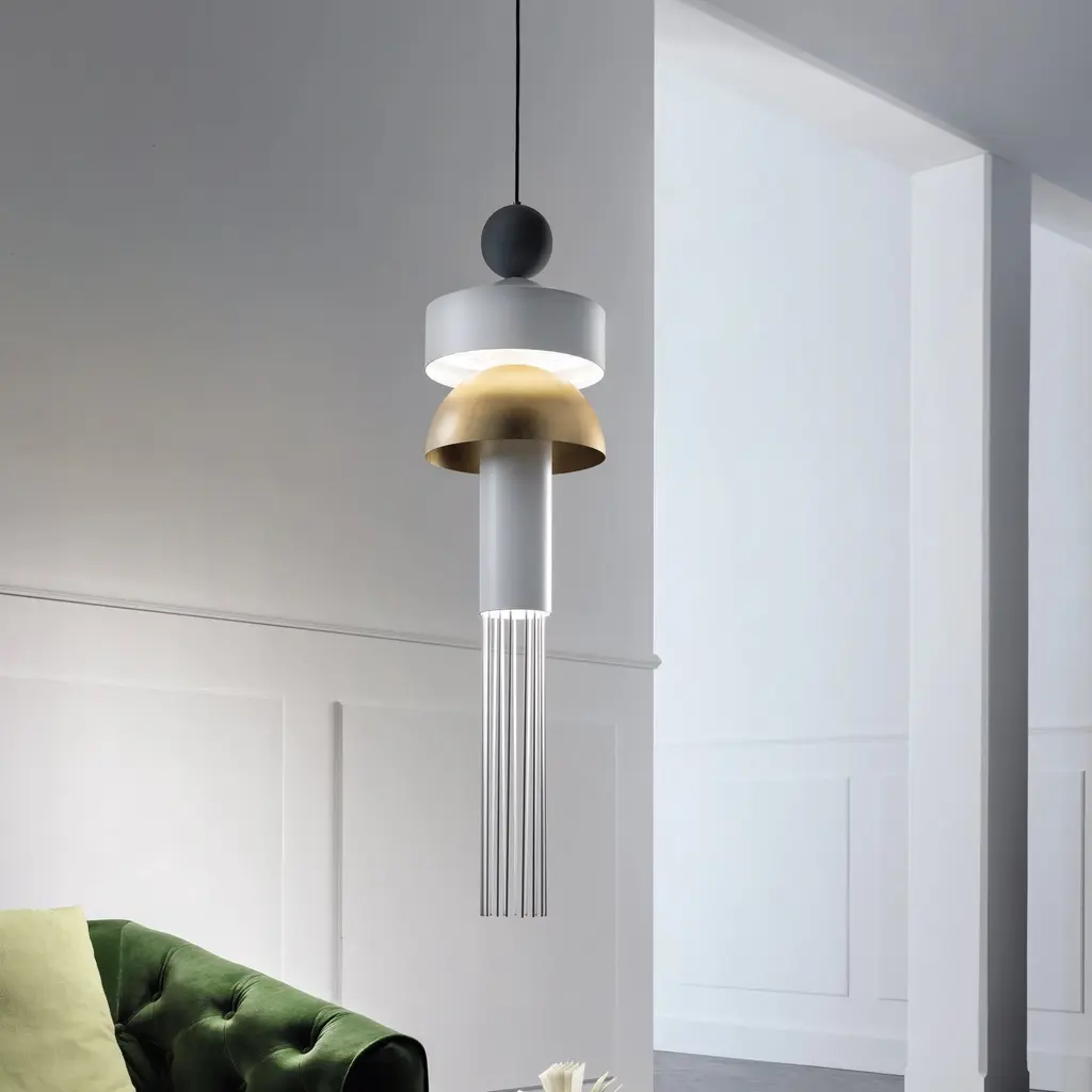 Indulge in the luxurious and timeless design of the Nappe X1 LED Pendant Light from Masiero. Made in Italy, it features a downward-projecting LED lamp enclosed in a conical housing supported by a solid brass sphere. Inspired by traditional palace curtains, it adds both light and shadows to your space. Highlights