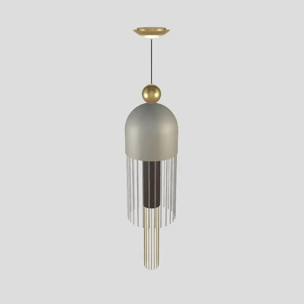 Illuminate your home with the Nappe X2 LED Pendant Light from Masiero. This luxurious and elegant pendant light features a turned metal frame enriched with brushed brass details and adorned with a small brass orb. Combining design elements with geometric shapes and decorative tassels, the Nappe creates a unique and personalized composition for a sophisticated, timeless look. Highlights