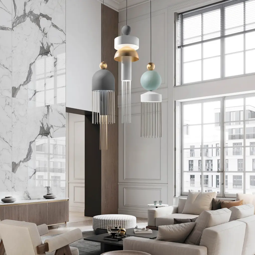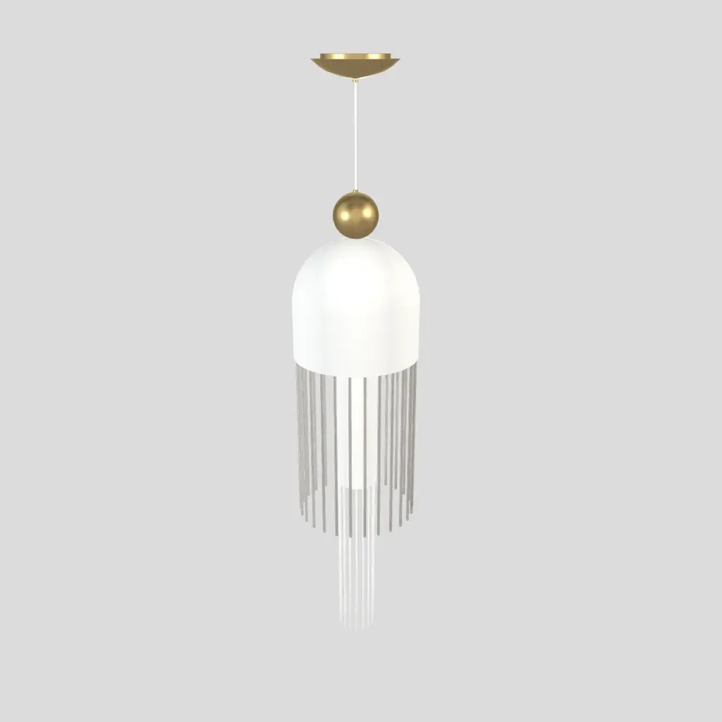 Illuminate your home with the Nappe X2 LED Pendant Light from Masiero. This luxurious and elegant pendant light features a turned metal frame enriched with brushed brass details and adorned with a small brass orb. Combining design elements with geometric shapes and decorative tassels, the Nappe creates a unique and personalized composition for a sophisticated, timeless look. Highlights
