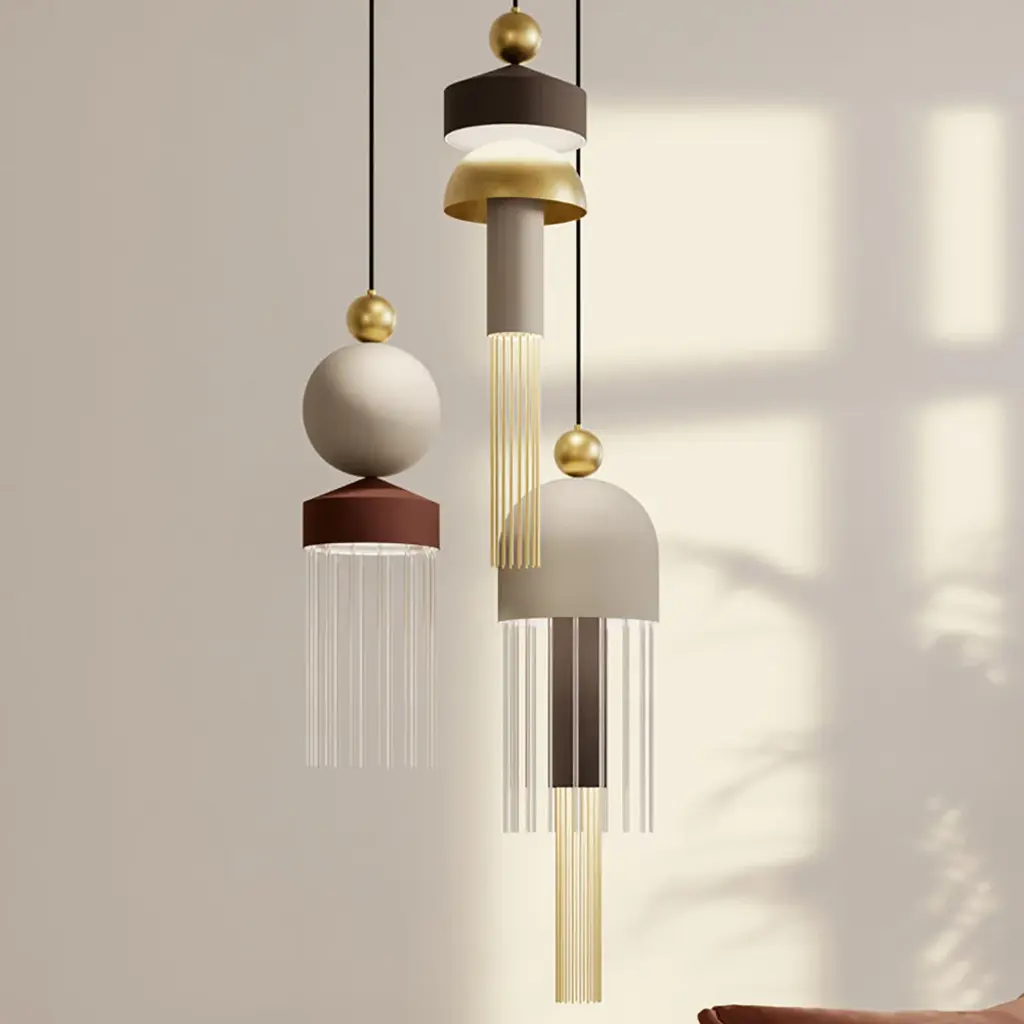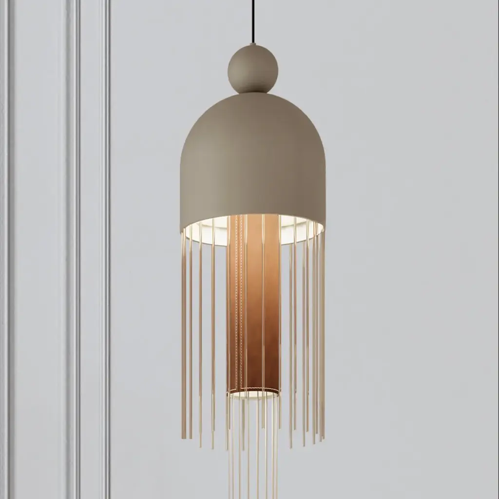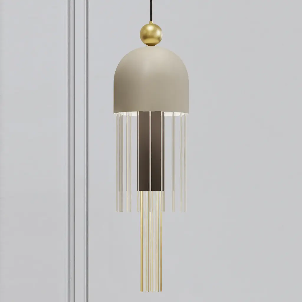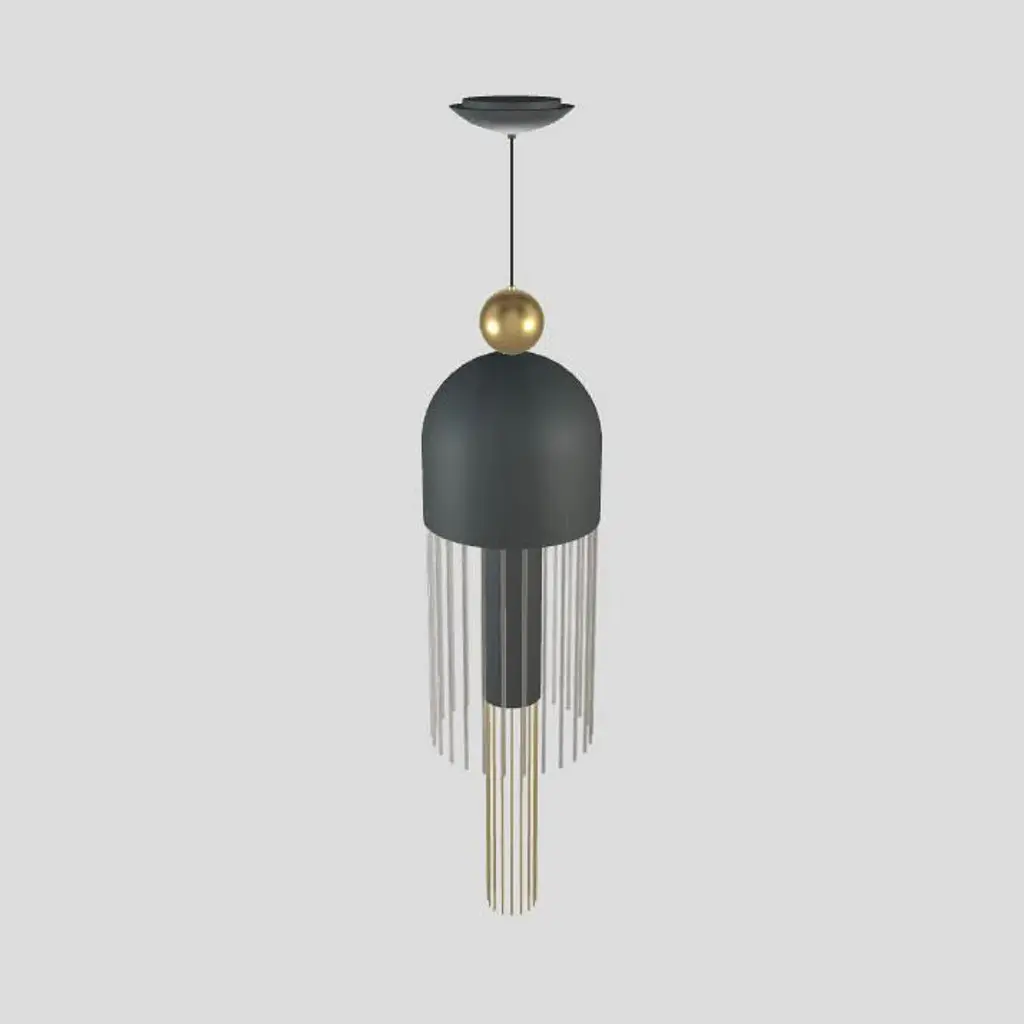 Illuminate your home with the Nappe X2 LED Pendant Light from Masiero. This luxurious and elegant pendant light features a turned metal frame enriched with brushed brass details and adorned with a small brass orb. Combining design elements with geometric shapes and decorative tassels, the Nappe creates a unique and personalized composition for a sophisticated, timeless look. Highlights