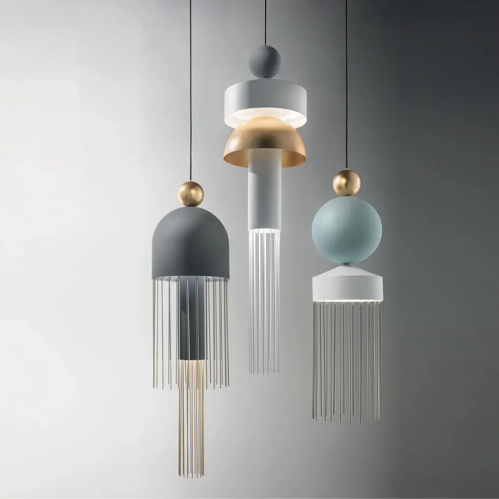 Illuminate your home with the Nappe X3 LED Pendant Light from Masiero. This luxurious and elegant pendant light features a turned metal frame enriched with brushed brass details and adorned with small varnished glass or gold metallic beams. Combining design elements with geometric shapes and decorative tassels, the Nappe creates a unique and personalized composition for a sophisticated, timeless look. Highlights