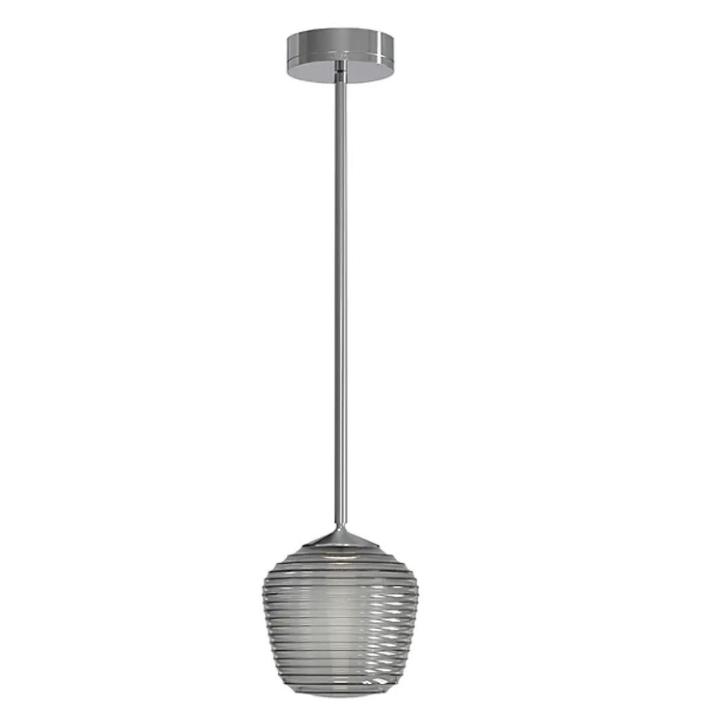 The Nara LED Mini Pendant with Taper Ribbed Shade from Astro Lighting is a contemporary lighting solution that seamlessly marries style and functionality. The pendant features a glass globe with a distinctive ribbed appearance, adding texture and visual intrigue to your space. Suspended by a streamlined downrod attached to a ceiling canopy, Nara is a statement piece that elevates your room. Crafted from high-quality aluminum with a glass shade, this pendant brings brilliant light from overhead that is dimmable when paired with a separately sold ELV dimmer.