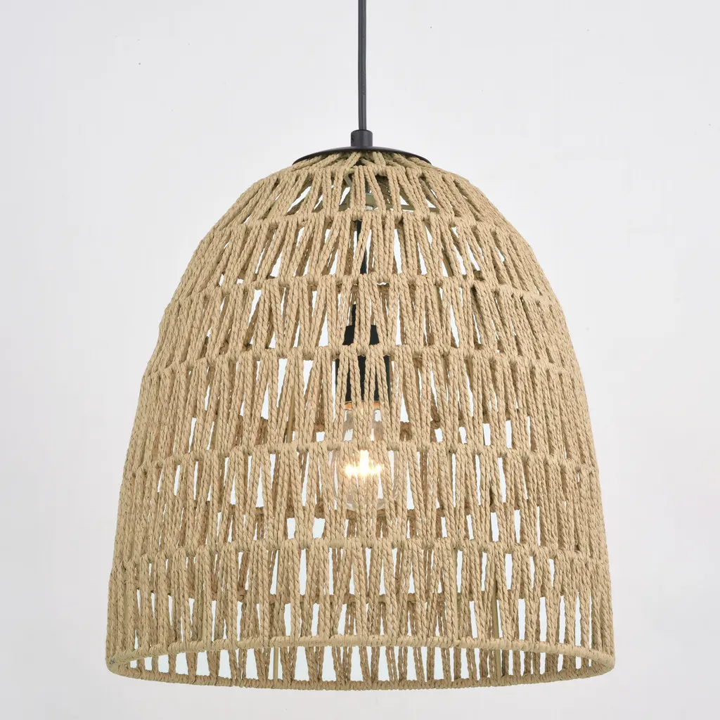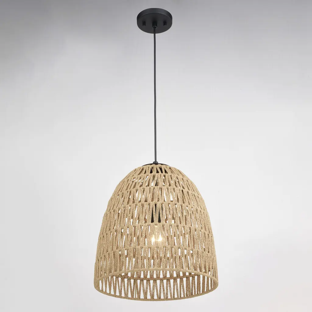 Add warmth and beauty to your space with the Nassau collection of pendant lights. The handwoven texture of the natural rope shade is the perfect blend of modern and rustic. This collection is further enhanced with contrasting matte black accents. Neutral in color but not in design, the open and airy frame is a showstopper whether the light is on or off. This pendant light works well in foyers, kitchens, dining rooms, and bedrooms.