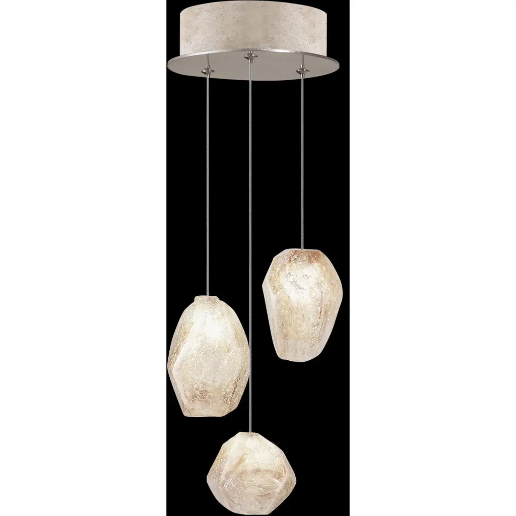 Master glass artisans blend quartz with other minerals to create Natural Quartz glass drop pendant with gold-toned silver leaf canopy. Also available in platinized silver leaf with choice of additional crystal glass options. For 220V, item is configured w