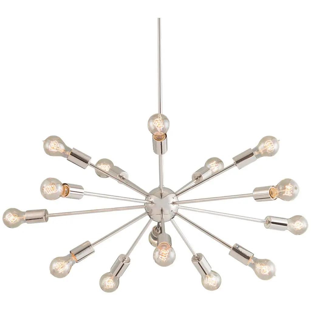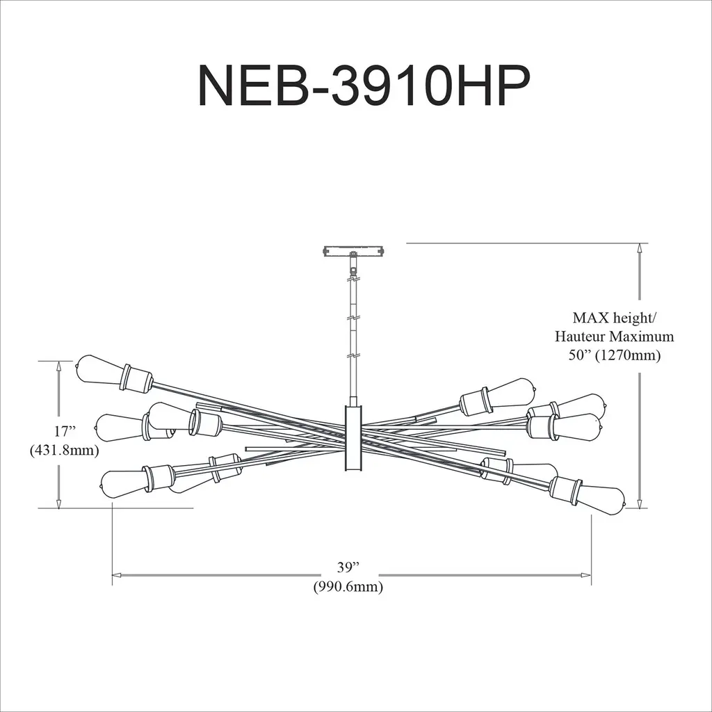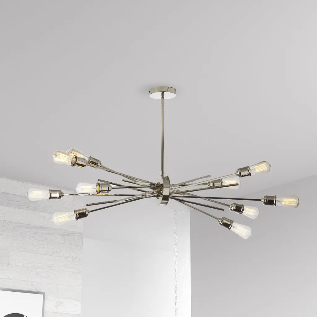 Adventurously stylish, the Nebraska family of lighting is inspired by the wide open spaces of the prairie state. The expansive design comes in a choice of configurations oriented vertically, horizontally or in all directions. A metal frame in a choice of gleaming finishes houses the arms that radiate out from the center. The bulbs emanate light from the end of each arm in a variety of intriguing patterns. With all its possible configurations, Nebraska lighting will add a focal point to any room from the living or great room to a dinette or hallway.