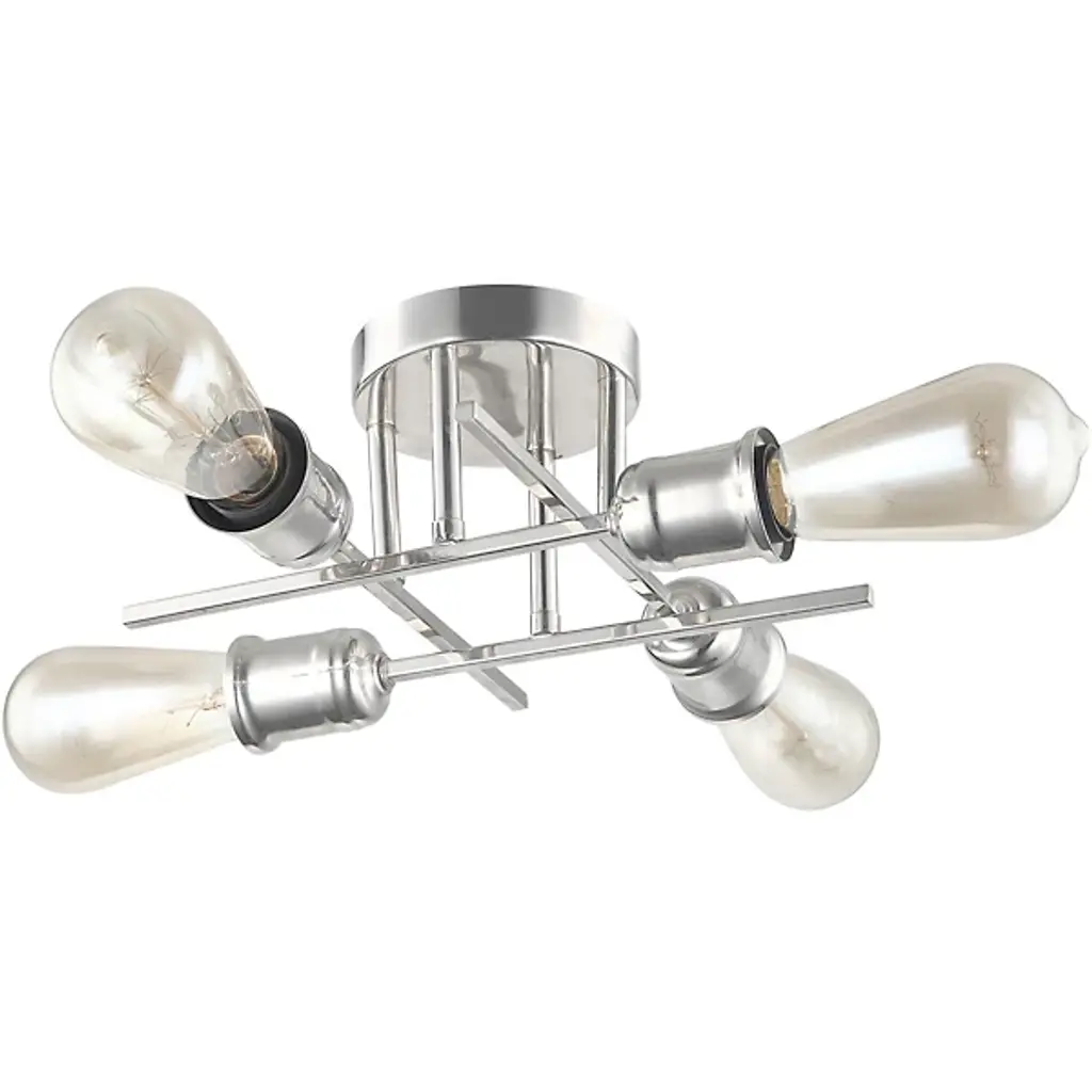 With a lively combination of playful, vintage, and modern, the Nebraska Semi-Flushmount by Dainolite brings life to any space it inhabits. A circular canopy holds four intersecting arms that form a sleek number sign motif. Incandescent bulbs are held at the end of each arm, freely sending bright light in each direction to fill the room with an ambient glow. With a unique and subtly industrial design, this fixture makes a statement amongst modern décor.
