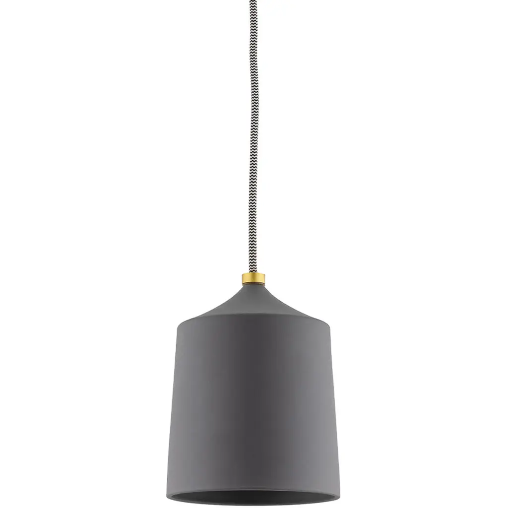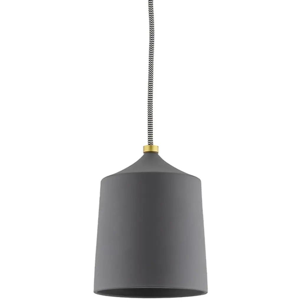 Featuring a matte black ceramic shade and antiqued brass hardware, this pendant provides modern appeal with the perfect hint of industrial intrigue.