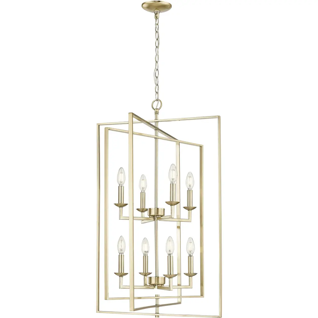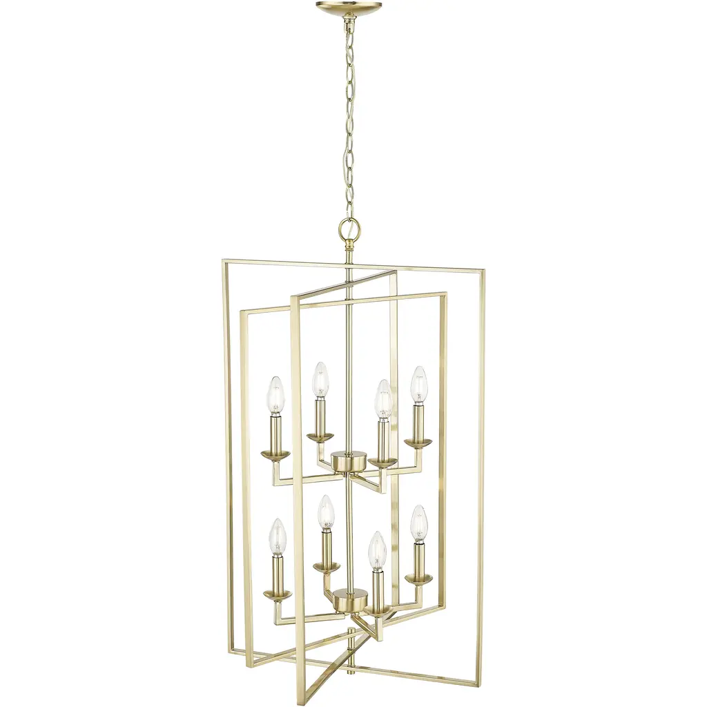 Dynamic and dramatic, The Nellis Collection of chandeliers is a geometric delight that creates a structural sense of movement reminiscent of delicate art mobiles. These glamorous fixtures are available in 4-light or two-tiered 8-light options. Finished in glimmering modern gold, the overall design effect is both exciting and provocative.