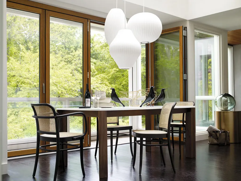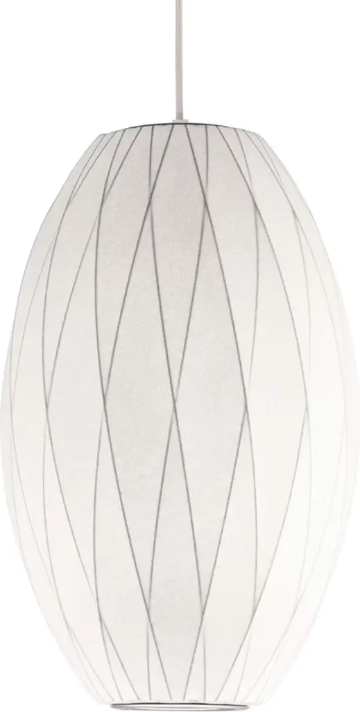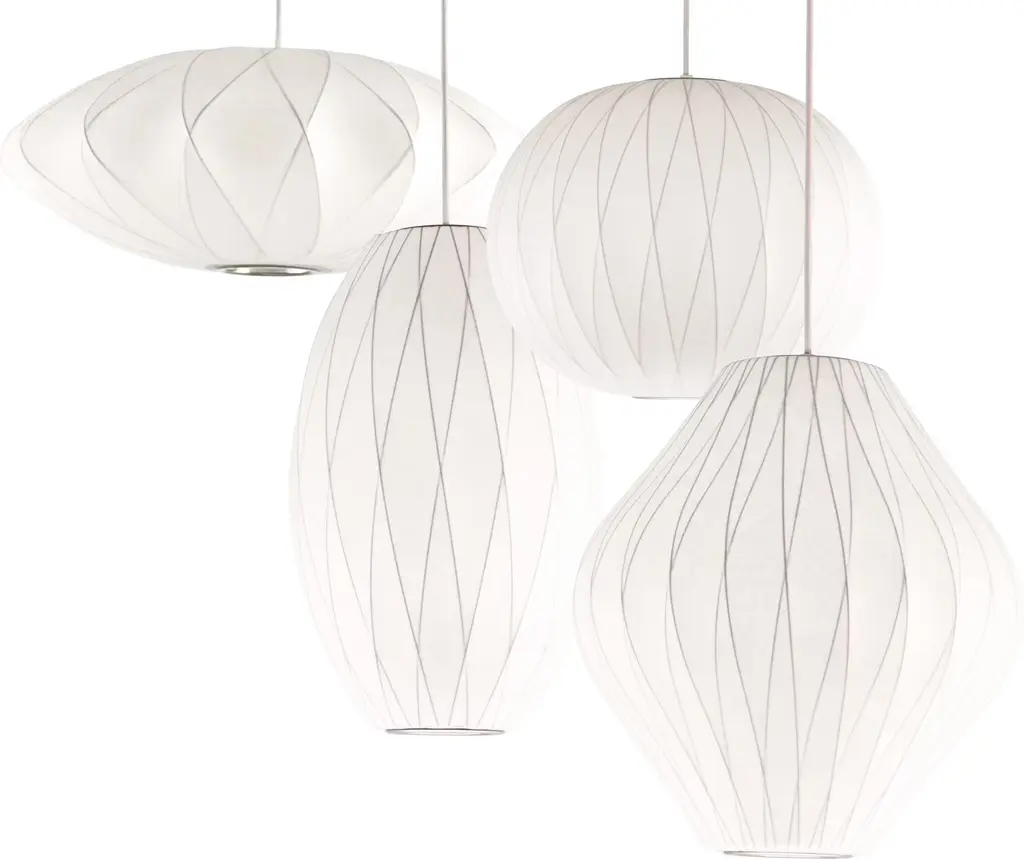 While outfitting his office, architect and Herman Miller design director George Nelson discovered a silk-covered Swedish hanging lamp that he coveted but found too expensive. He then recalled seeing a photo in the paper of Liberty ships being mothballed “by having the decks covered with netting and then being sprayed with a self-webbing plastic," which got him thinking. “And then, Whammo!" Inspiration struck, and by the next night, Nelson had designed his first Bubble Lamp (1952) by spinning a skeleton of steel wires on a turntable and shooting it with translucent plastic until it was covered in a smooth, washable film. “When you put a light in it, it glowed," he said. This is the authentic Bubble Lamp, produced in partnership with the George Nelson Foundation. Bulb (not included): LED, CFL or incandescent; E26 base; 60W max for small, 150W max for others. UL Listed.