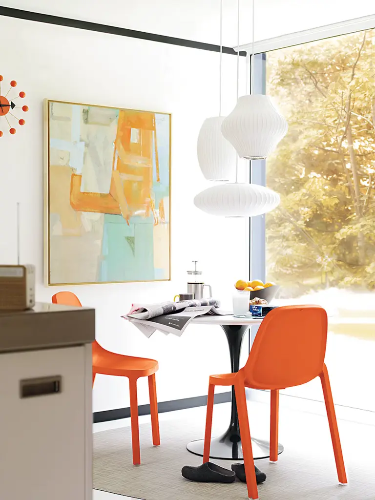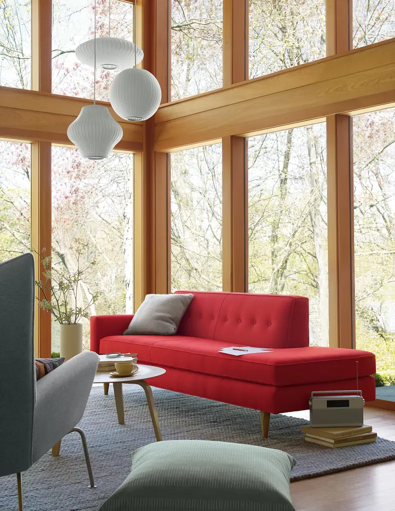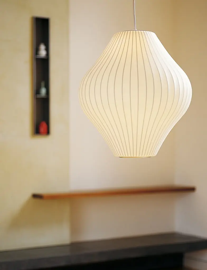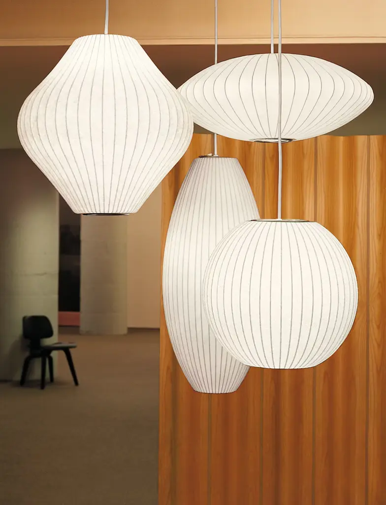 While outfitting his office, architect and Herman Miller design director George Nelson discovered a silk-covered Swedish hanging lamp that he coveted but found too expensive. He then recalled seeing a photo in the paper of Liberty ships being mothballed “by having the decks covered with netting and then being sprayed with a self-webbing plastic," which got him thinking. “And then, Whammo!" Inspiration struck, and by the next night, Nelson had designed his first Bubble Lamp (1952) by spinning a skeleton of steel wires on a turntable and shooting it with translucent plastic until it was covered in a smooth, washable film. “When you put a light in it, it glowed," he said. This is the authentic Bubble Lamp, produced in partnership with the George Nelson Foundation. Bulb (not included): LED, CFL or incandescent; E26 base; 60W max for small, 150W max for others. UL Listed.