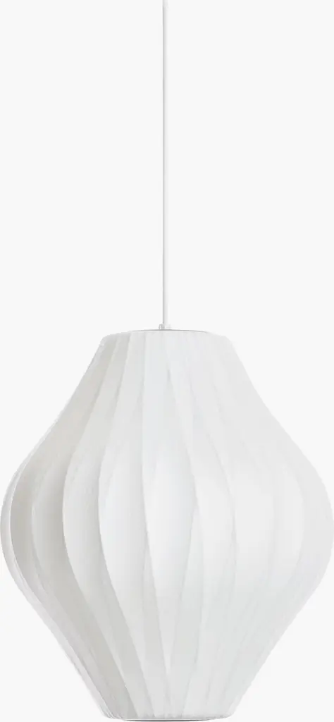 While outfitting his office, architect and Herman Miller design director George Nelson discovered a silk-covered Swedish hanging lamp that he coveted but found too expensive. He then recalled seeing a photo in the paper of Liberty ships being mothballed “by having the decks covered with netting and then being sprayed with a self-webbing plastic," which got him thinking. “And then, Whammo!" Inspiration struck, and by the next night, Nelson had designed his first Bubble Lamp (1952) by spinning a skeleton of steel wires on a turntable and shooting it with translucent plastic until it was covered in a smooth, washable film. “When you put a light in it, it glowed," he said. This is the authentic Bubble Lamp, produced in partnership with the George Nelson Foundation. Bulb (not included): LED, CFL or incandescent; E26 base; 60W max for small, 150W max for others. UL Listed.