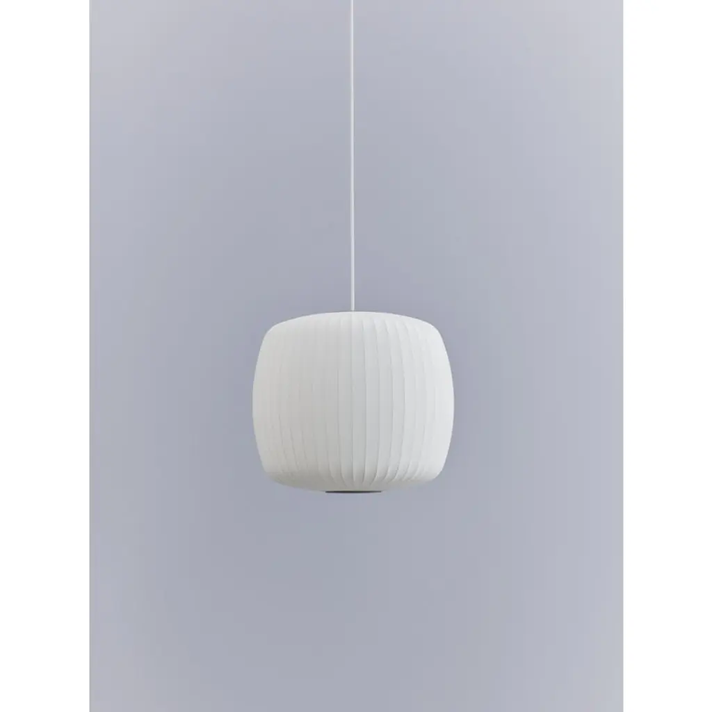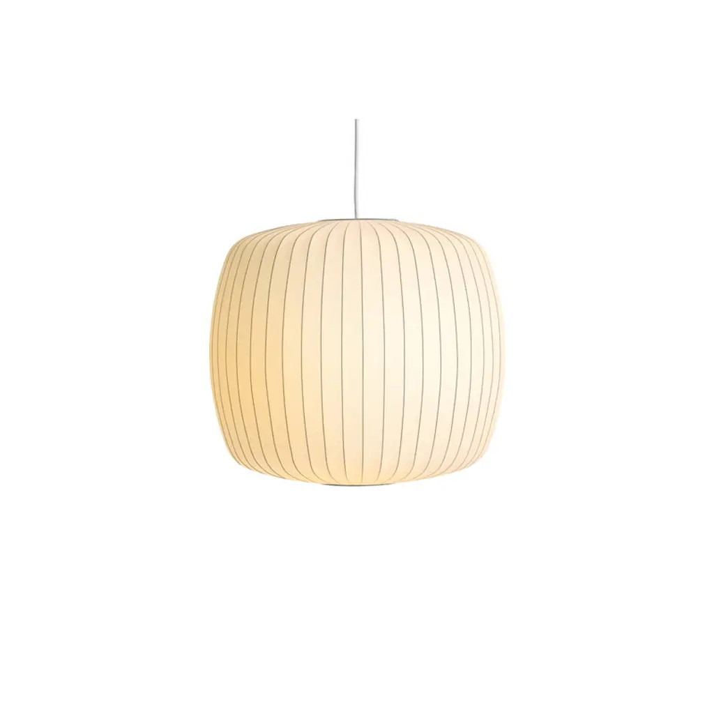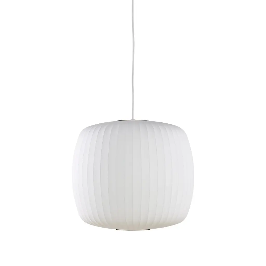 HAY's Nelson Roll Bubble pendant's silhouette is created by spraying a translucent plastic polymer over a steel-wire frame. This allows the pendant to emit a soft, diffused light that creates an inviting atmosphere in any room. The Nelson Roll Bubble luminaire is a stylish illuminator suited for various spaces in homes, cafés, hotels as well as offices. The Nelson Roll Bubble is part of a lighting series designed by George Nelson and produced by Herman Miller in the 1950s. Nelson wanted to purchase a similar Swedish lamp made of silk, but instead, opted for designing his own version of the pendant to save time and money. The lamps in the collection are still manufactured at the same factory that originally started manufacturing them in 1952.