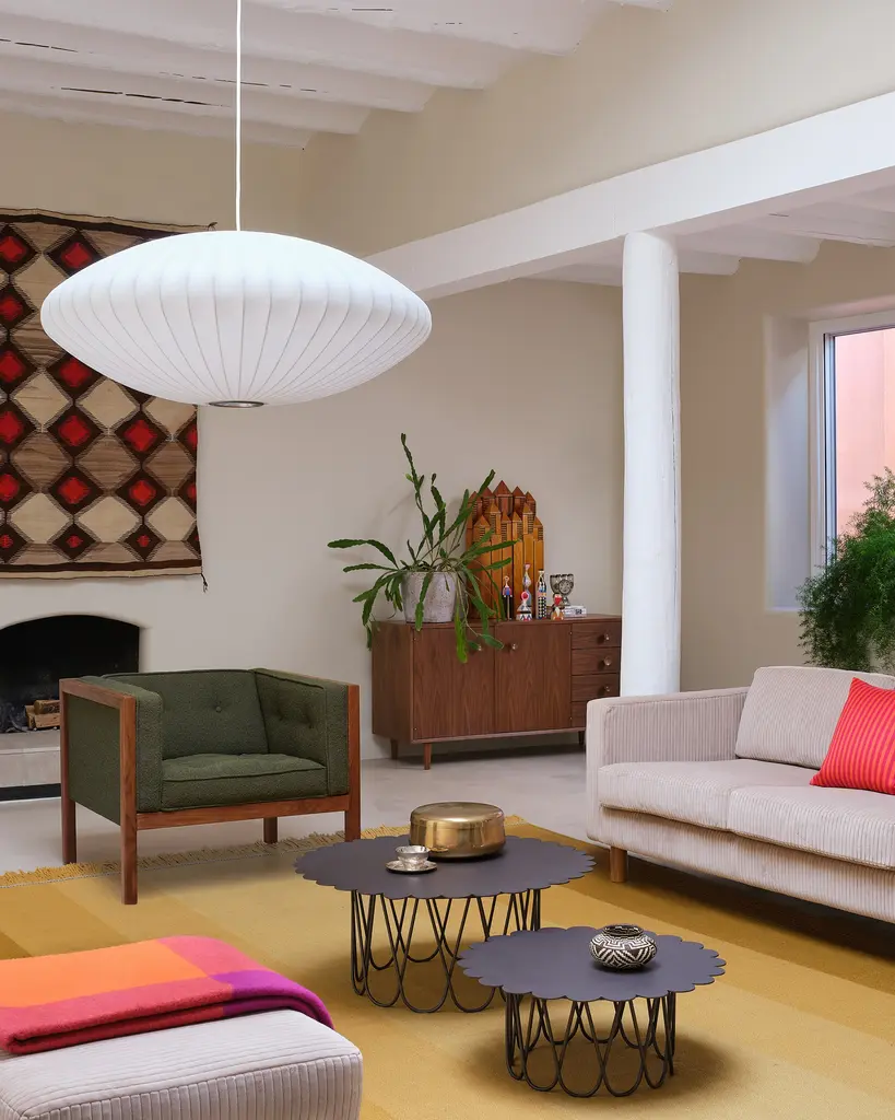 With its disc-like shade accentuated with thin vertical lines, the Nelson Saucer Bubble Pendant (1952) plays with shape and geometry. Designed to float delicately overhead, this saucer-shaped hanging pendant light fixture comes in multiple sizes and with nickel-plated mounting hardware. The Nelson Saucer Pendant is produced in collaboration with the George Nelson Foundation. Bulb (not included): LED, CFL, or incandescent; E26 base; 60W max for small, 150W max for others. UL Listed.