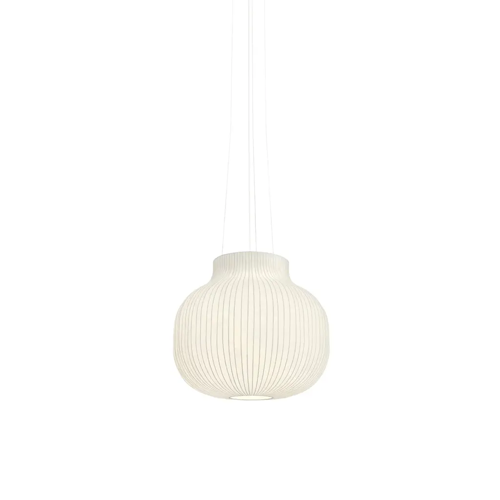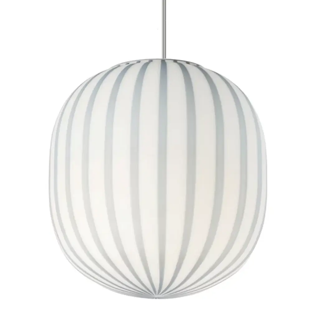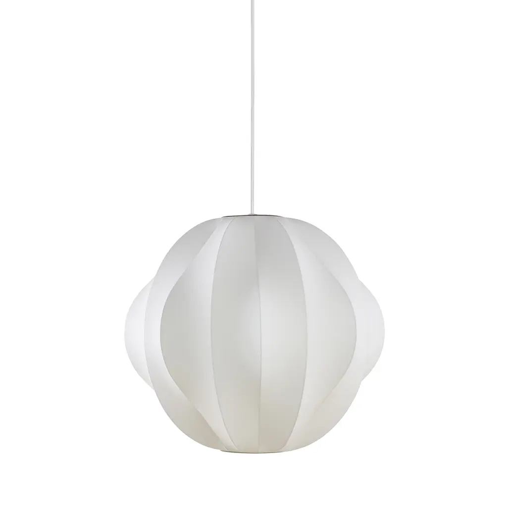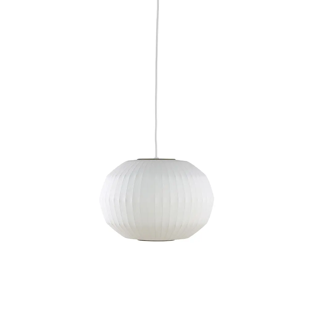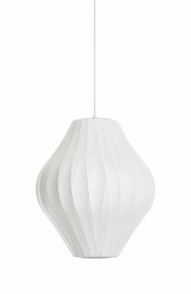 In 1952, the legendary designer George Nelson fell in love—with a Swedish hanging lamp that he felt would be perfect for his design office. Covered in silk, the lamp was priced so prohibitively that he decided to make his own version instead. That’s how the Nelson™ Angled Sphere Bubble Pendant was born. Shaped like a sphere with angles in its vertical arcs, the lamp’s light steel frame is overlaid with a transparent plastic spray acquired by Nelson from the US military, who developed it after WWII to help them preserve and store old warships and airplanes. Recently rediscovered by the venerable firm Herman Miller in George Nelson’s archives, the Nelson™ Angled Sphere Bubble Pendant is one of several shapes in Nelson’s series of pendant lamps. Each pendant provides a soft, glowing light that adds warmth to interior rooms and draws one’s eye to its unique shape. It includes a ceiling plate of brushed, nickel-plated steel and a 10-foot cord, is UL listed, and fits a standard size bulb up to 150 watts (not included). The George Nelson™ Angled Sphere Bubble Pendant is available in sizes S (9.5h x 14w 9.5h x 14”diam.), M (15h x 20”w) and L (22h x 28”w). Installation required. George Nelson has work in MoMA’s collection. Warning: This product can expose you to lead, which is known in the State of California to cause cancer, birth defects or other reproductive harm. For more information go to www.p65warnings.ca.gov