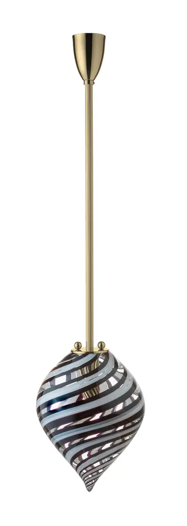 Nero Bianco pendant balloon canne by Magic Circus EditionsDimensions: H 36 x W 27 x D 27 cmMaterials: fluted brass, mouth-blown glassColour: nero biancoAvailable finishes: Brass, nickelAvailable colours: rosa rosso, senape bianco, blu, senape grigio, nero bianco, violaAll our lamps can be wired according to each country. If sold to the USA it will be wired for the USA for instance.Rethinking, reimagining, redesigning familiar objects that we look at every day without ever really seeing them and using light to tell stories, this how Marie-Lise Féry sees her work. Offering a new take on our urban heritage, changing our perspective through her work on scale and usage. Since 2015, Magic Circus Éditions has been setting the world of lighting ablaze, creating airy, playful and magical designs that merge retro with sleek and contemporary. A free-spirited antiquarian, founder Marie-Lise Féry draws inspiration from the world of cabarets and the magic of the circus to give shape to imaginative, fun and playful collections. The air of magic she breathes into her work reveals a wealth of interpretations and widens possibilities for creative interiors. The combination of traditional know-how — outstanding craftsmanship — and her imaginative take on historical, everyday objects lends an unexpected and charming quality to her creations.Féry’s lights are designed just like magic lanterns — precursor to modern-day cinema —, inspiring wonder through oversized, seemingly weightless compositions and understated references. Each collection has its own inspiration: the first models of street lighting for Collection 01; the happy memories of funfairs, sweets and balloons for her latest collection Balloon; the Far East for Collection 02; and the colourful, carefree spirit of the 1970s for Pop-Up, released in 2019. Magic Circus Éditions draws on airy designs, dream-like inspirations, colours and fun to create a sense of enchantment.Magic Circus Éditions founder Marie-Lise Féry was born in Paris. After studyingart business, she moved to New York to start her career. Fascinated by the city’s architecture, she found an endless source of inspiration in the Big Apple’s monumental decors. Returning to France to settle down in Lyon, she opened an antiques gallery named Un Château en Espagne, and started telling her own stories through objects she gleaned on markets all around the country. A way for her to perpetuate her mother’s motto: “Objects with a soul will always belong”. Since 2015, the year she established Magic Circus Éditions, she has moved on to lighting as a new medium for telling her stories, bringing the magic of the show into home interiors. With her love for the circus, turn-of-the-century cabarets and music halls, Marie-Lise Féry’s love of unusual objects has remained strong, but now prefers to focus her attention on pieces she has imagined herself. With a fun and light-spirited approach, she creates a bold visual effect that elicits instant attraction. She collaborates with some of Europe’s greatest artisans, from Prague and Murano to Clermont-Ferrand, working for instance with a Czech company specialising in sculpting glass using a diamond-blade saw, or an auto body shop renowned for their work with lacquers. The refinement of shapes and finishes, bespoke designs and technical excellence all contribute to creating pieces that inspire surprise and wonderment. In the manner of Wes Anderson in Grand Budapest Hotel, blending together elegance, humour and unexpected details, her designs never fail to surprise. Attentive to the effect of her designs both in daylight and at night, Marie-Lise Féry takes us on a journey through space (from outside to inside) and time (from yesterday to today).
