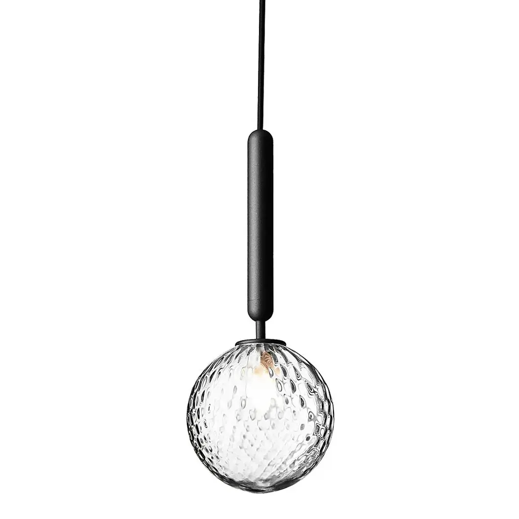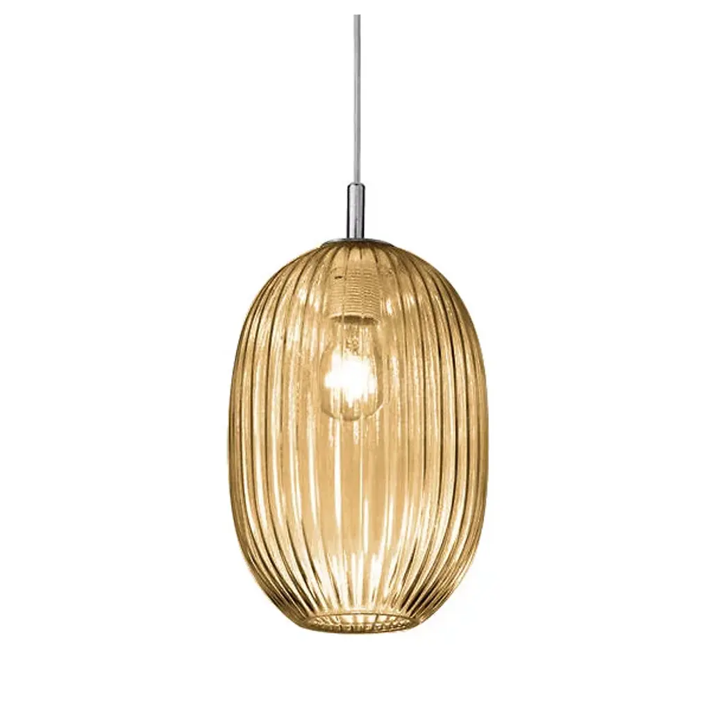 The Nest 501 Pendant from Metal Lux shows harmony in its radiating glass construction like the intricately arranged twigs of the organic nest. Designer Studio Tecnico Metallux created the piece to display the process of collecting and transmitting light. The studio's work is built on the idea of balancing strong forms with proportion and materials. This pendant offers a slim suspension to accentuate the shade's plump shape. The crystalline glass globe sports radiating accents that guide the eye from top to bottom as they create soft silhouetting and a pattern of subtle highlights. The lone bulb on top uses the glass to create an ambient glow and to funnel out a mellow downlight.