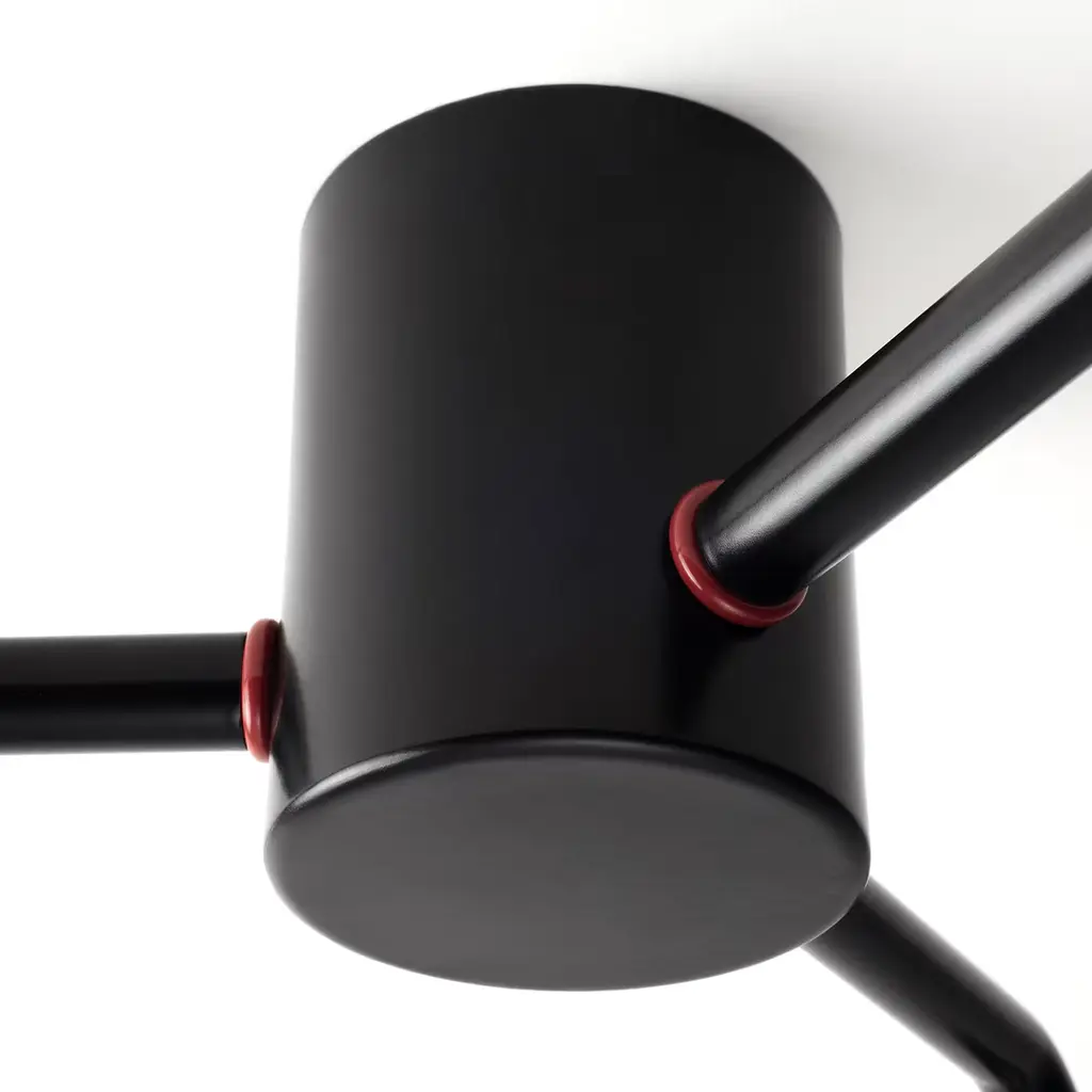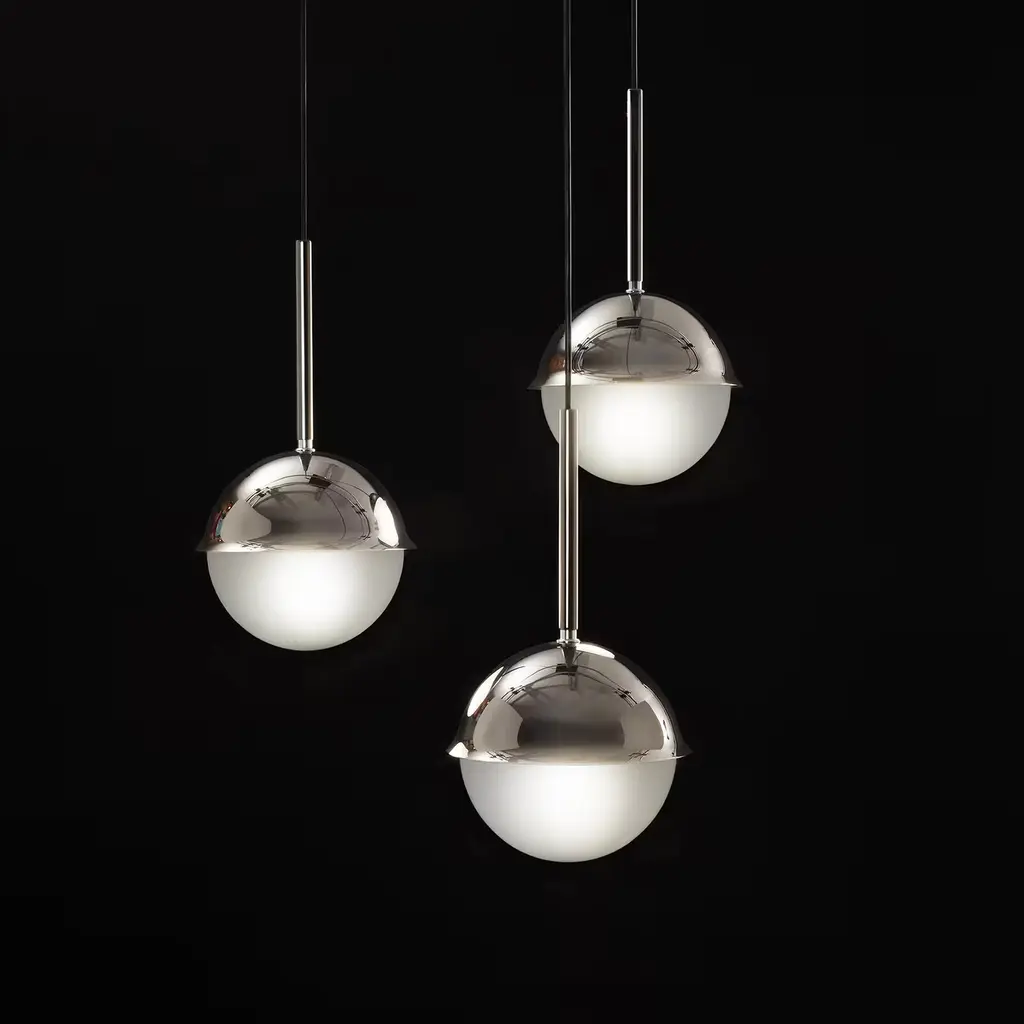 This ceiling lamp was born out of the collaboration between Tato and designer Antonia Astori. A superb piece of functional decor, this elegant lamp will infuse with understated sophistication a modern home, thanks to its geometric lines and the contrast in colors and finishes. The structure in chrome with a shiny black finish supports a spherical shade in transparent opaque glass and hugs its half top for a striking effect. Contract and commercial certifications available upon request.