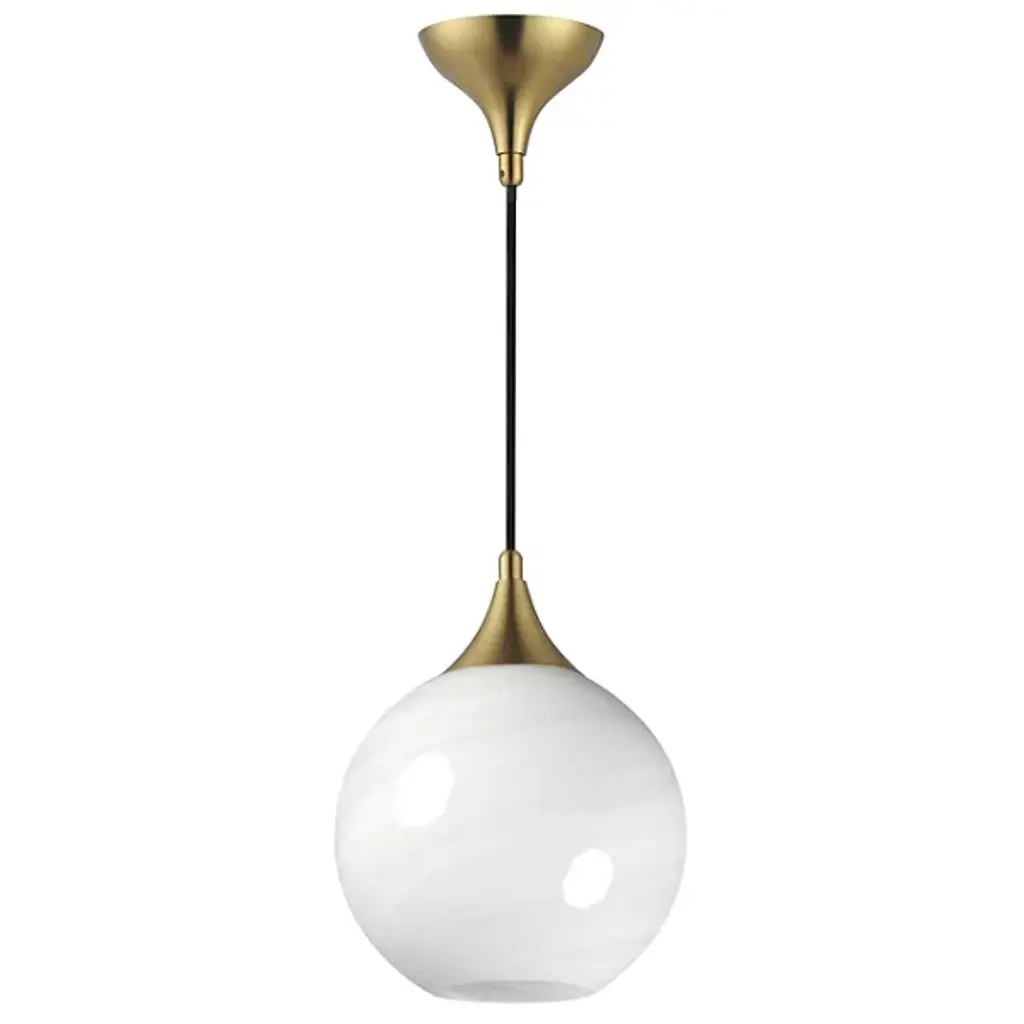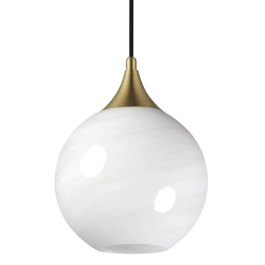 The Neve Pendant by Maxim Lighting captures an enchanting, timeless elegance with its swirling white Marble Glass globe that gently encases the light source. Reminiscent of delicate snow globes, it offers a subtle, sophisticated nod to wintry beauty without feeling tied to any season. The soft marbled patterns add depth and visual texture, making this pendant a graceful addition to a wide range of interiors—from sleek, modern spaces to warm, classic environments.