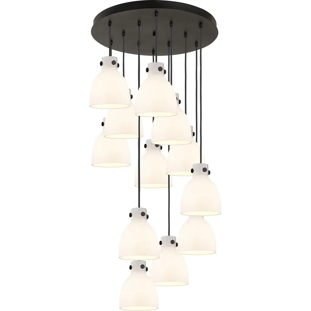 Newton Bell 12 Light 27.25 Inch Brushed Brass Multi Pendant Ceiling Light In White Glass