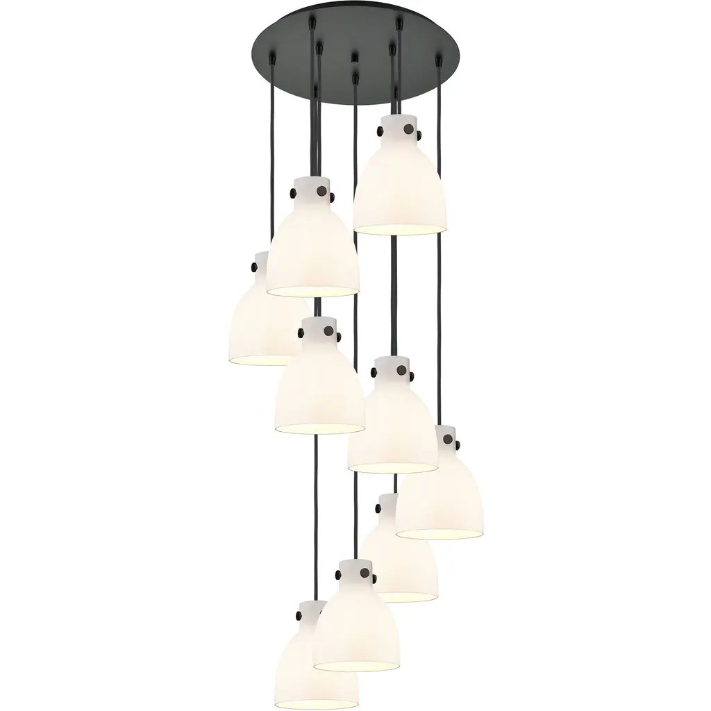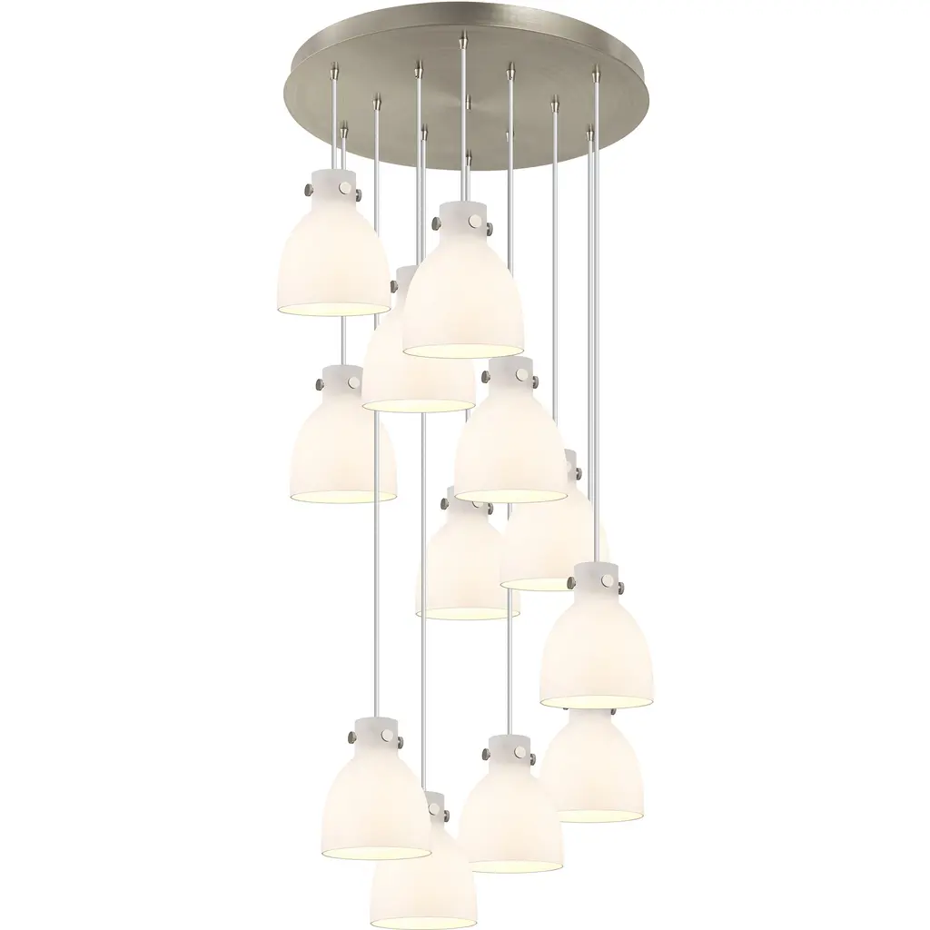 Newton Bell 12 Light 27.25 Inch Polished Nickel Multi Pendant Ceiling Light In White Glass
