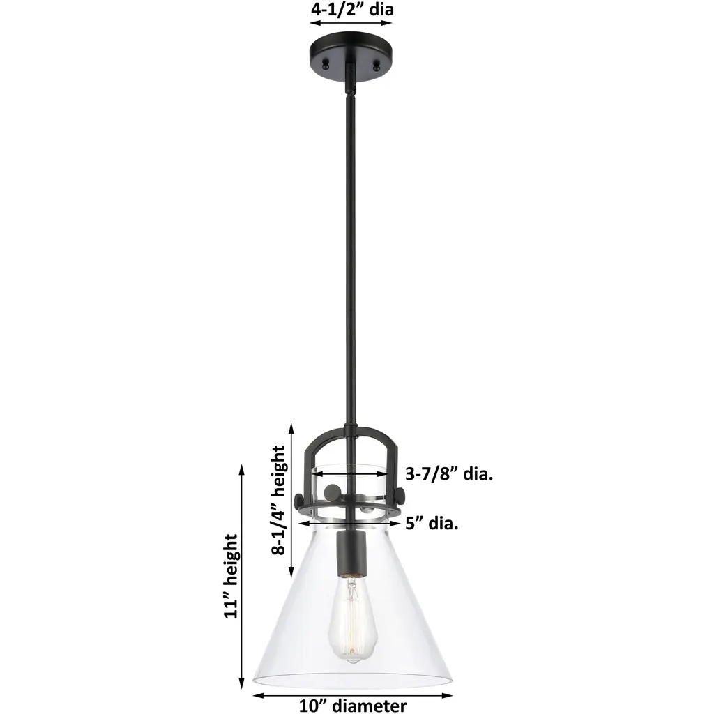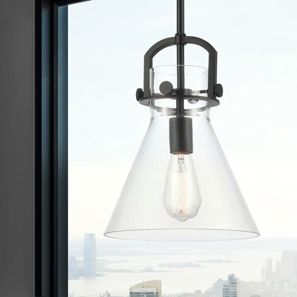 Newton Cone 1 Light 10 Inch Matte Black Mini Pendant Ceiling Light In Clear Glass