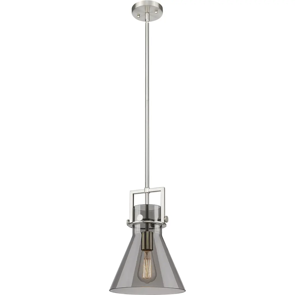 Newton Cone 1 Light 10 Inch Polished Nickel Pendant Ceiling Light In Plated Smoke Glass