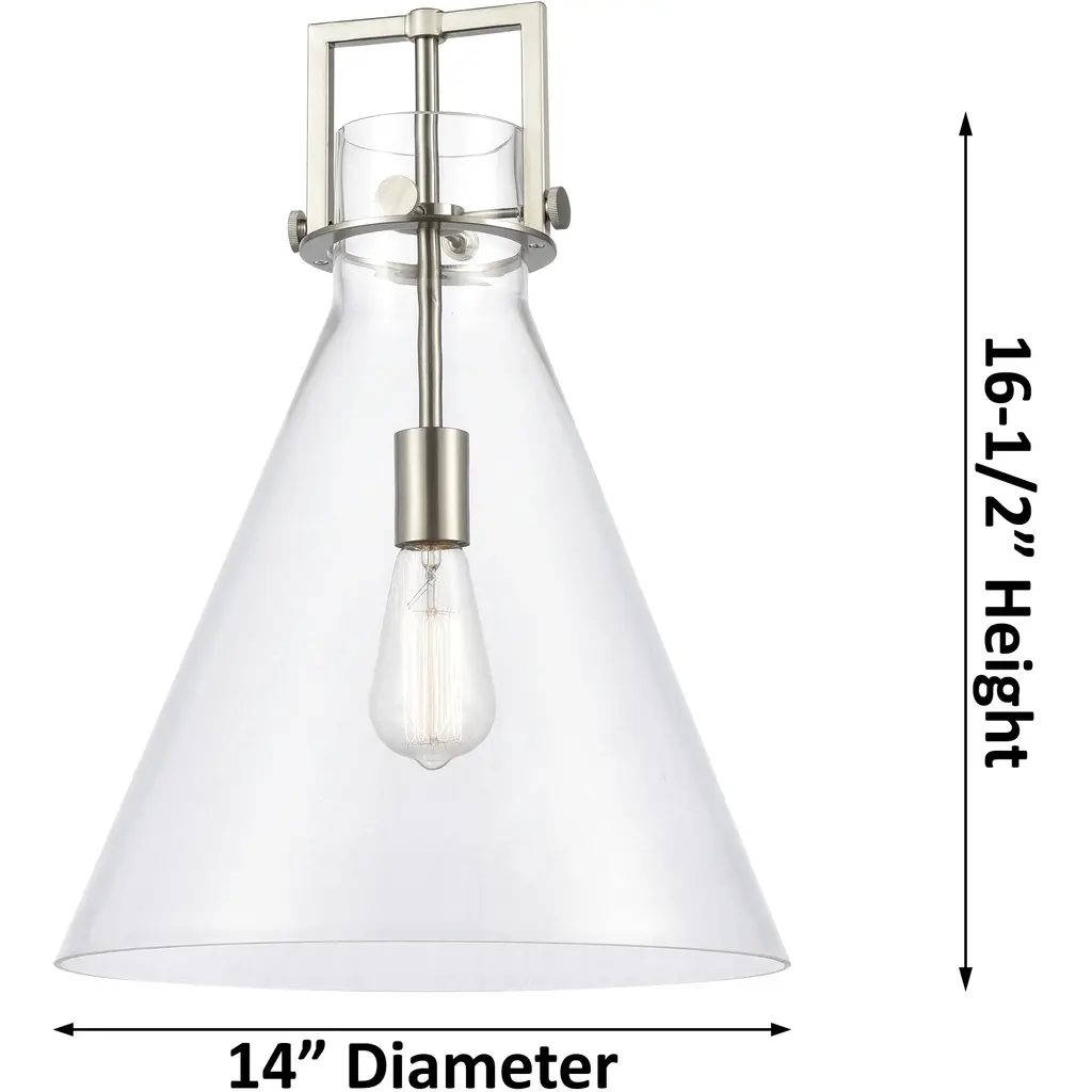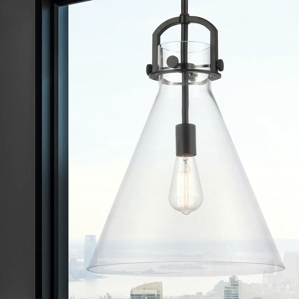 Newton Cone 1 Light 14 Inch Matte Black Pendant Ceiling Light In Clear Glass