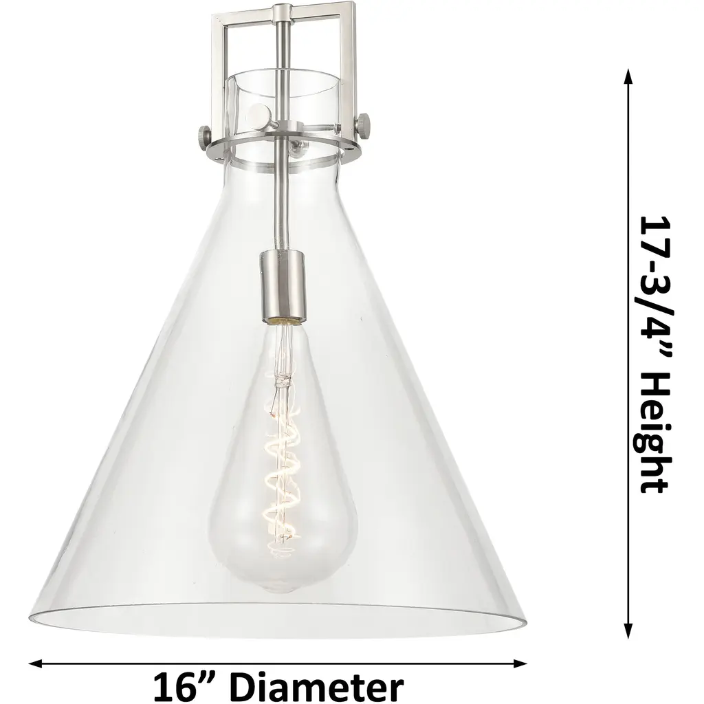Newton Cone 1 Light 16 Inch Satin Nickel Pendant Ceiling Light In Mercury Glass